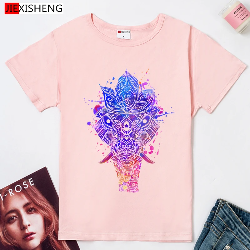 Летняя женская футболка с оригинальным психоделическим принтом слона, женская повседневная женская одежда с коротким рукавом, топы, футболки