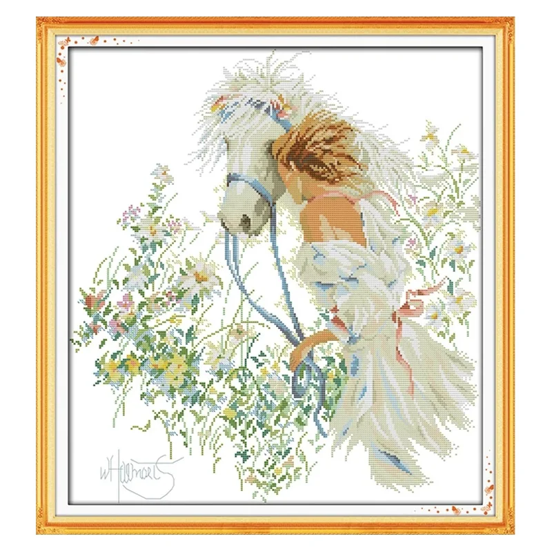 Белая лошадь и девочка DMC, Набор для вышивки крестиком, рукоделие, украшение для дома, китайский Счетный узор для вышивки крестиком