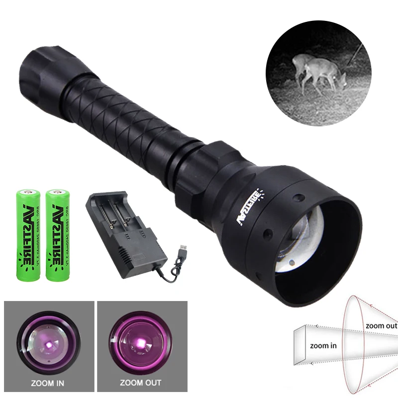 Охотничий ИК-фонарик дальнего действия, 850 нм940 нм, крепление для винтовки 25 мм, переключатель давления, аккумулятор 2 шт., зарядное устройство USB
