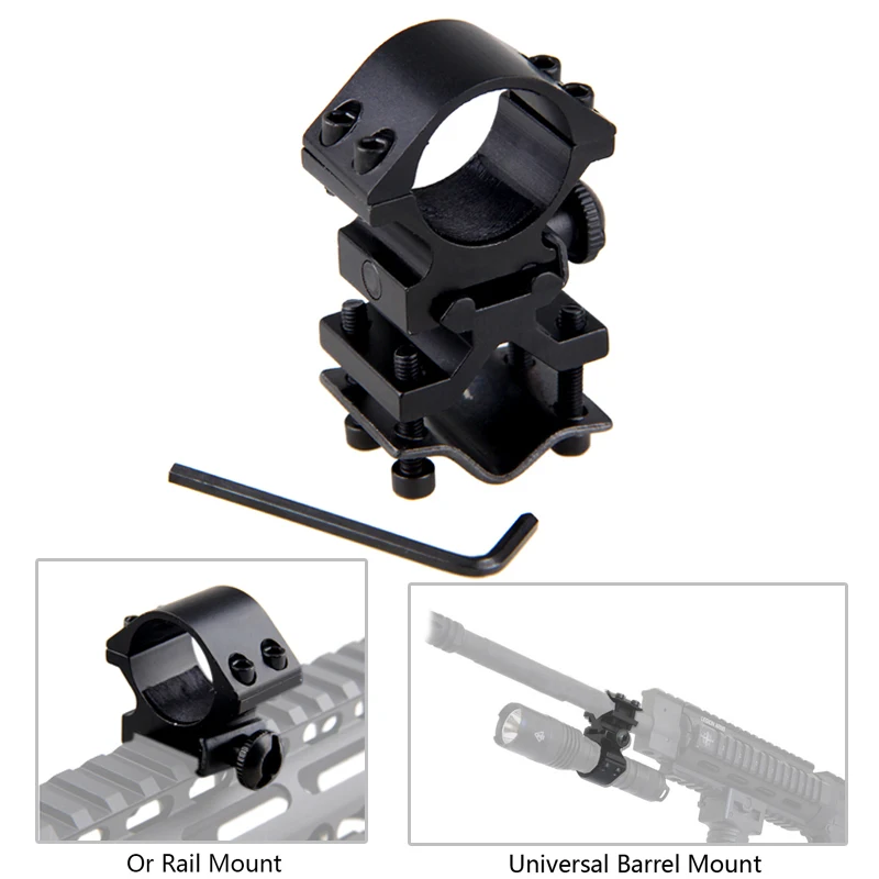 Предназначен для установки фонарика, лазерного прицела или прицела винтовки на ствол пистолета (диаметр 12-18 мм)