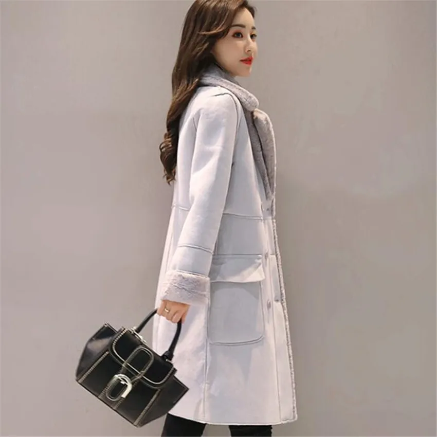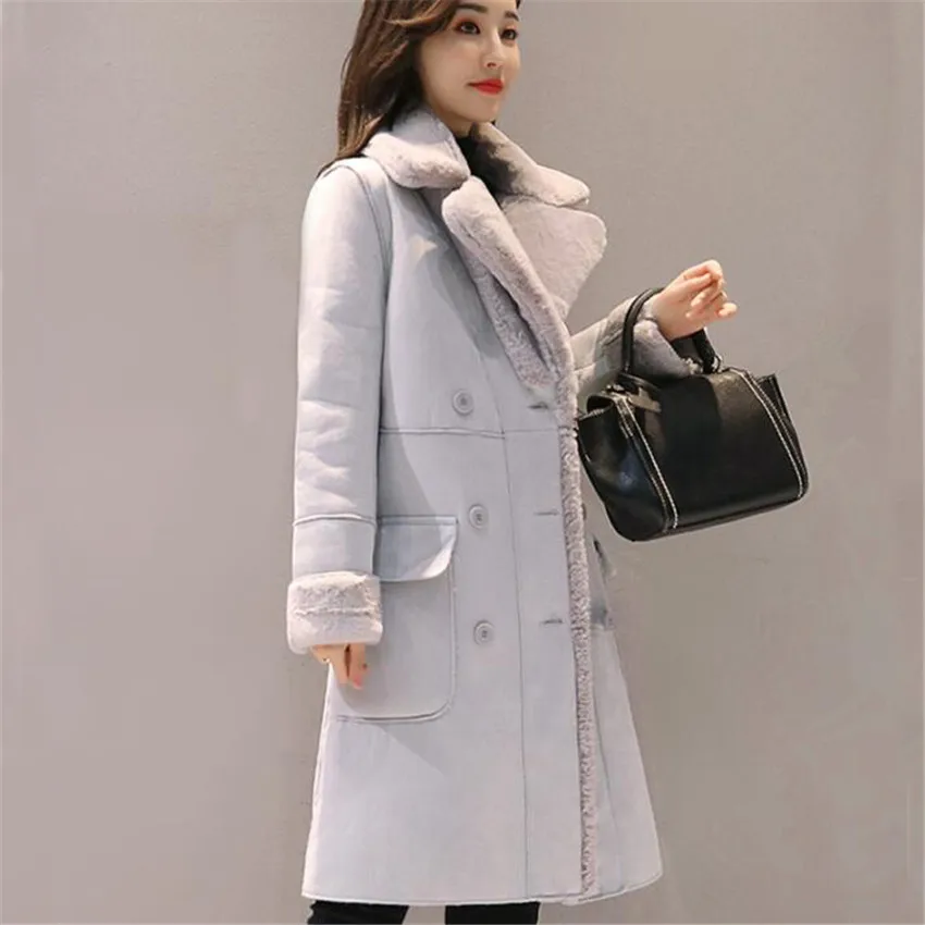 Женское длинное теплое пальто из искусственной замши, однотонная двубортная парка с бархатным утеплителем, верхняя одежда на осень и зиму, AB691