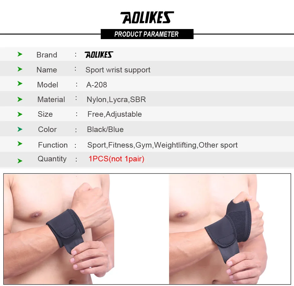 Спортивный Браслет AOLIKES, 1 шт., поддержка запястья, повязки для велоспорта, бега, тяжелой атлетики, фитнеса, тренажерного зала, тенниса, повязки для рук