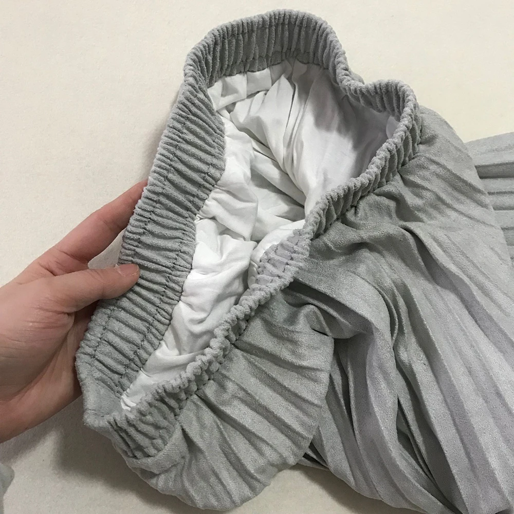 Женская замшевая юбка, двухслойная длинная Плиссированная Юбка-миди, весна 2021