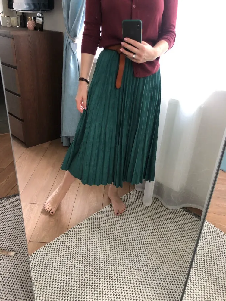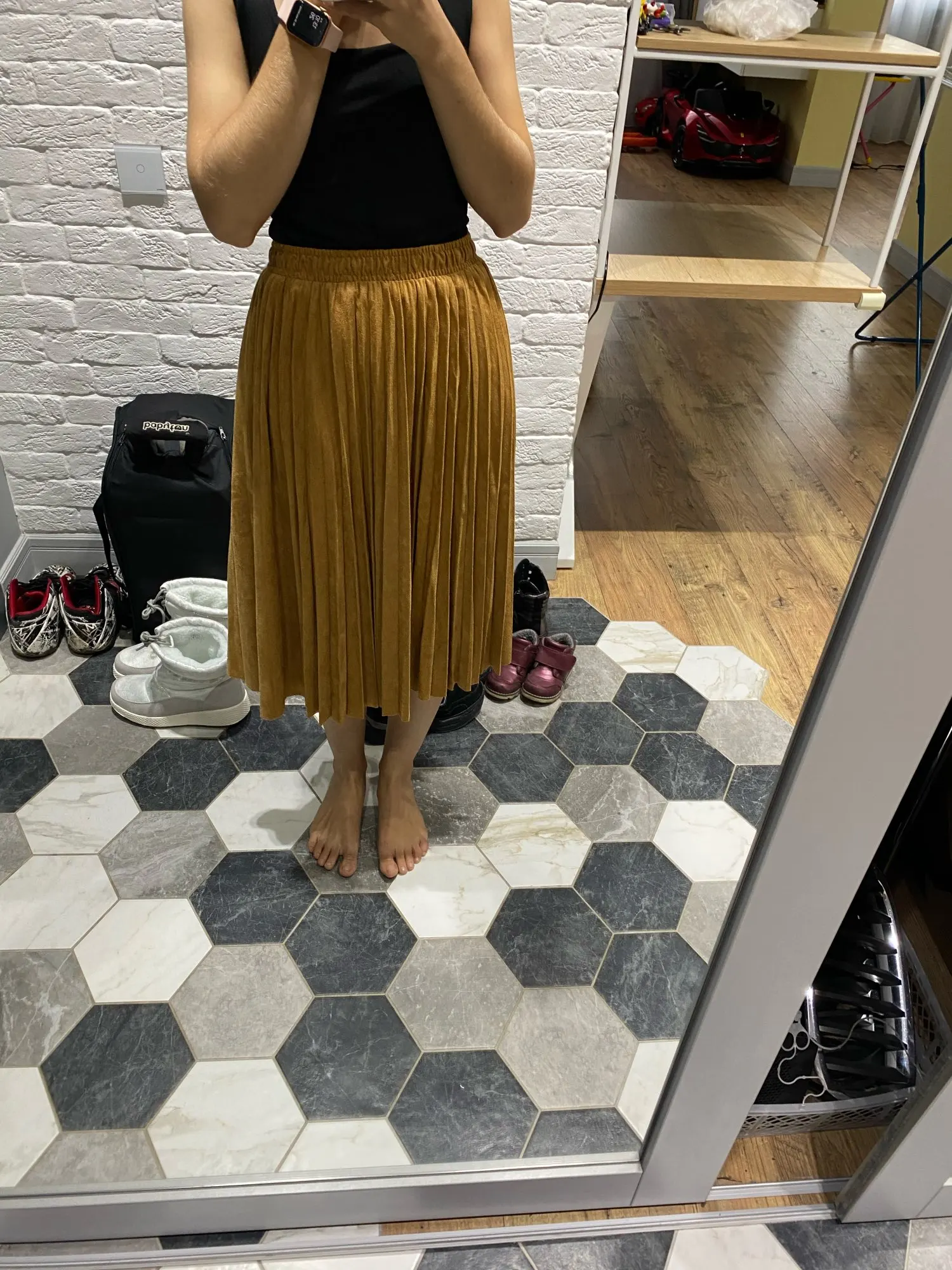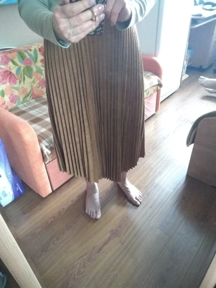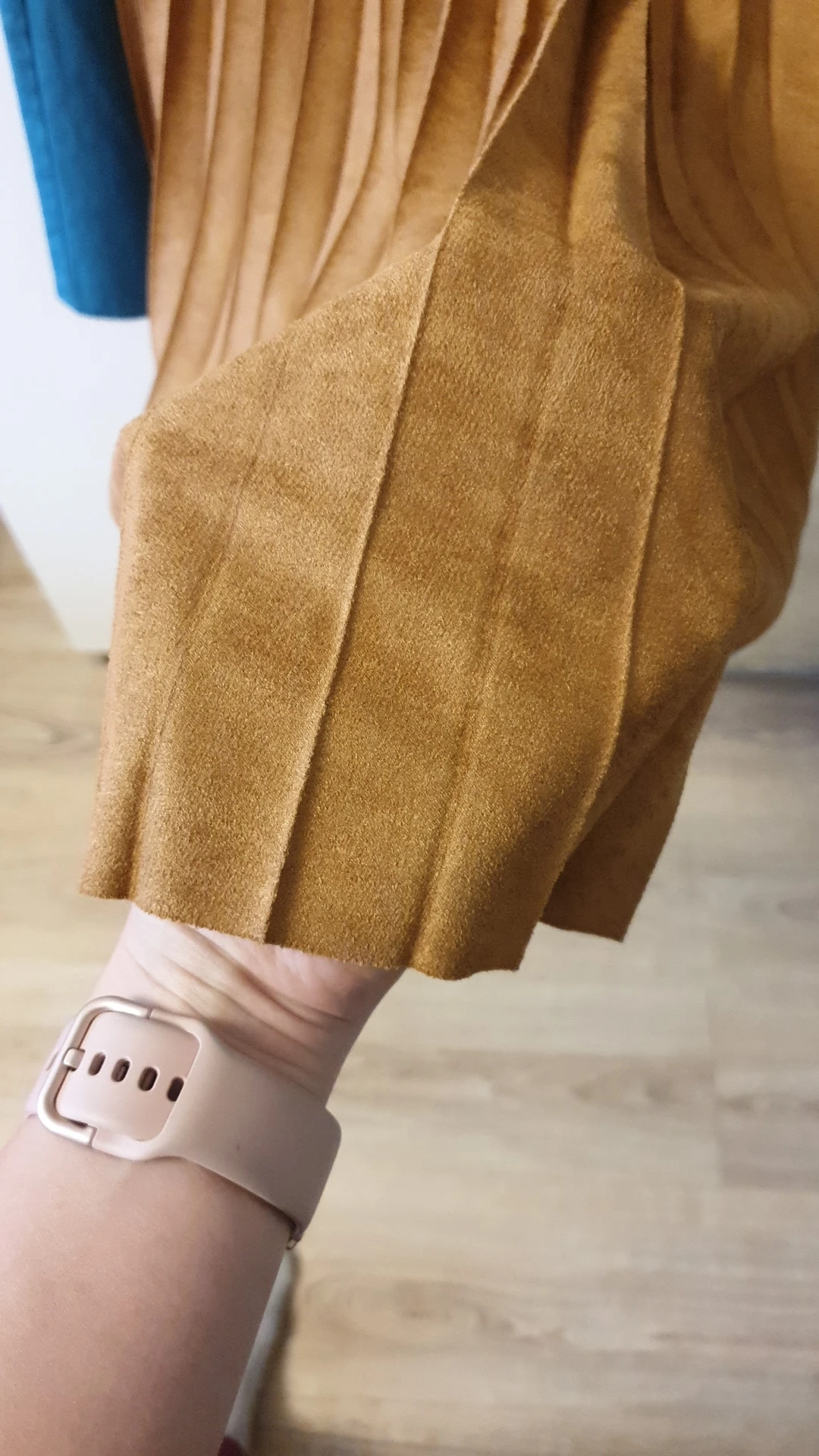 Больше обзоров в Instagram и Telegram @ok_alishopping Замшевая плиссированная юбка. Материал мягкий, плотный, швы ровные, есть подклад, низ не обработан, не электризуется. На 67/93, рост 168 подошёл р-р XS (в талии есть запас до 75 см). Объем талии у всех размеров одинаковый, только разная длина. У продавца представлена в 14 расцветках. Доставка 3 недели. Покупала с купоном за 1300₽.