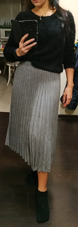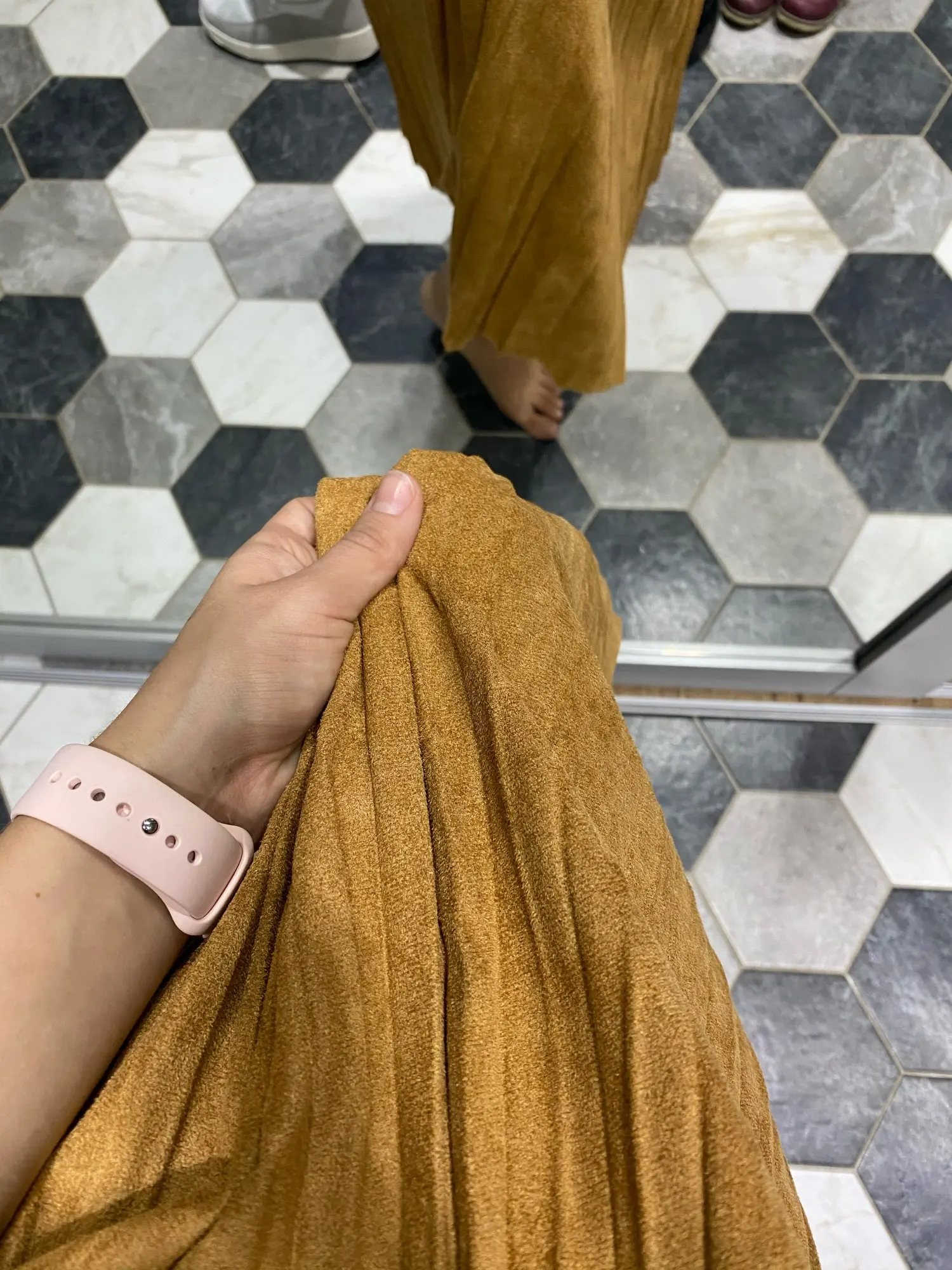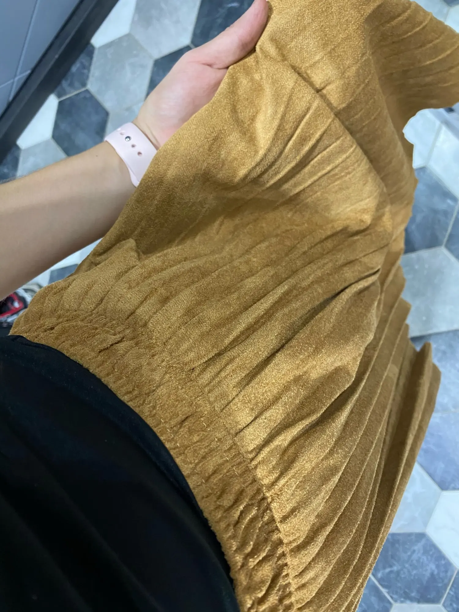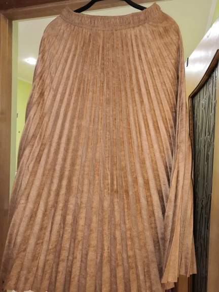 Больше обзоров в Instagram и Telegram @ok_alishopping Замшевая плиссированная юбка. Материал мягкий, плотный, швы ровные, есть подклад, низ не обработан, не электризуется. На 67/93, рост 168 подошёл р-р XS (в талии есть запас до 75 см). Объем талии у всех размеров одинаковый, только разная длина. У продавца представлена в 14 расцветках. Доставка 3 недели. Покупала с купоном за 1300₽.