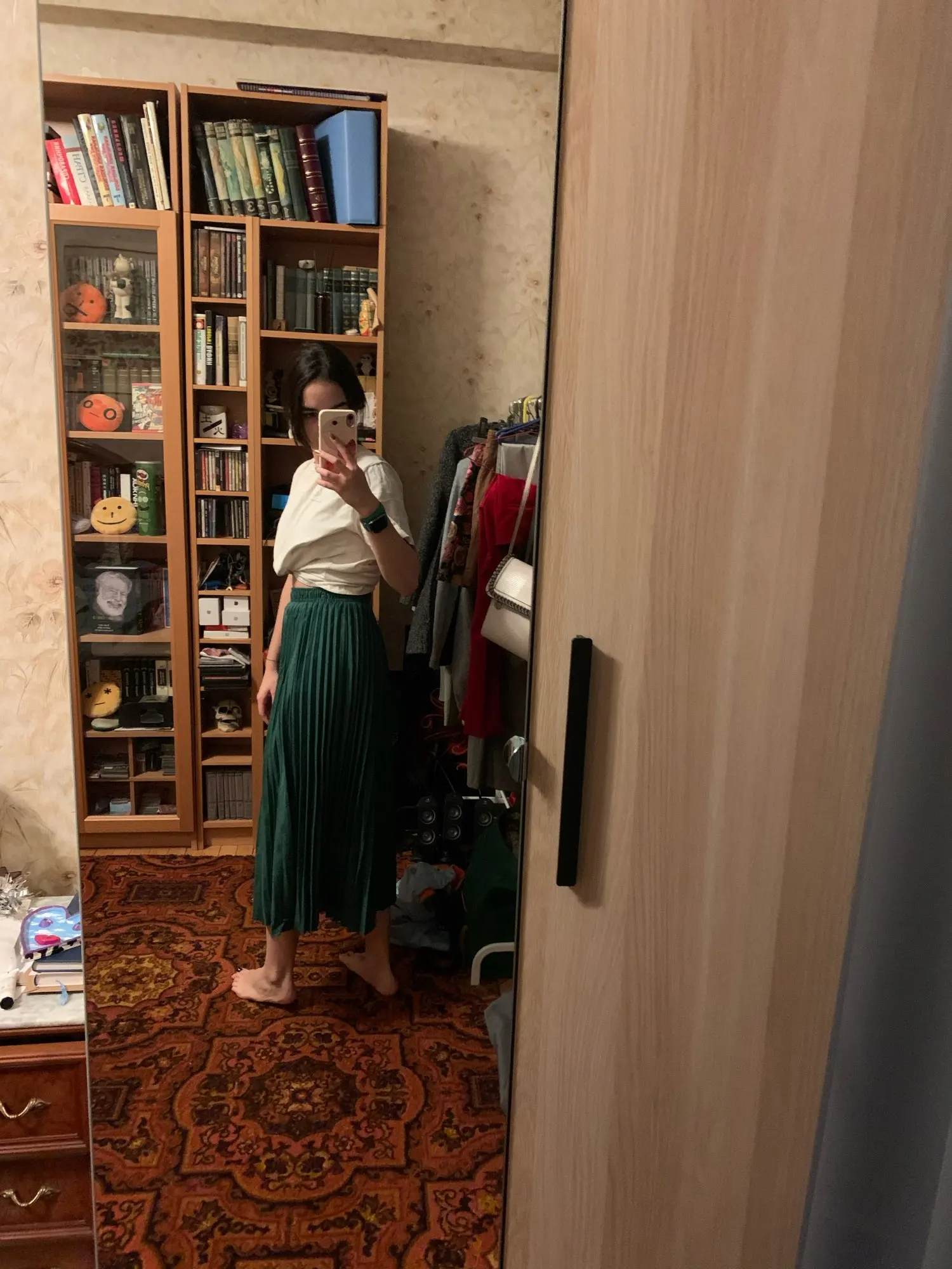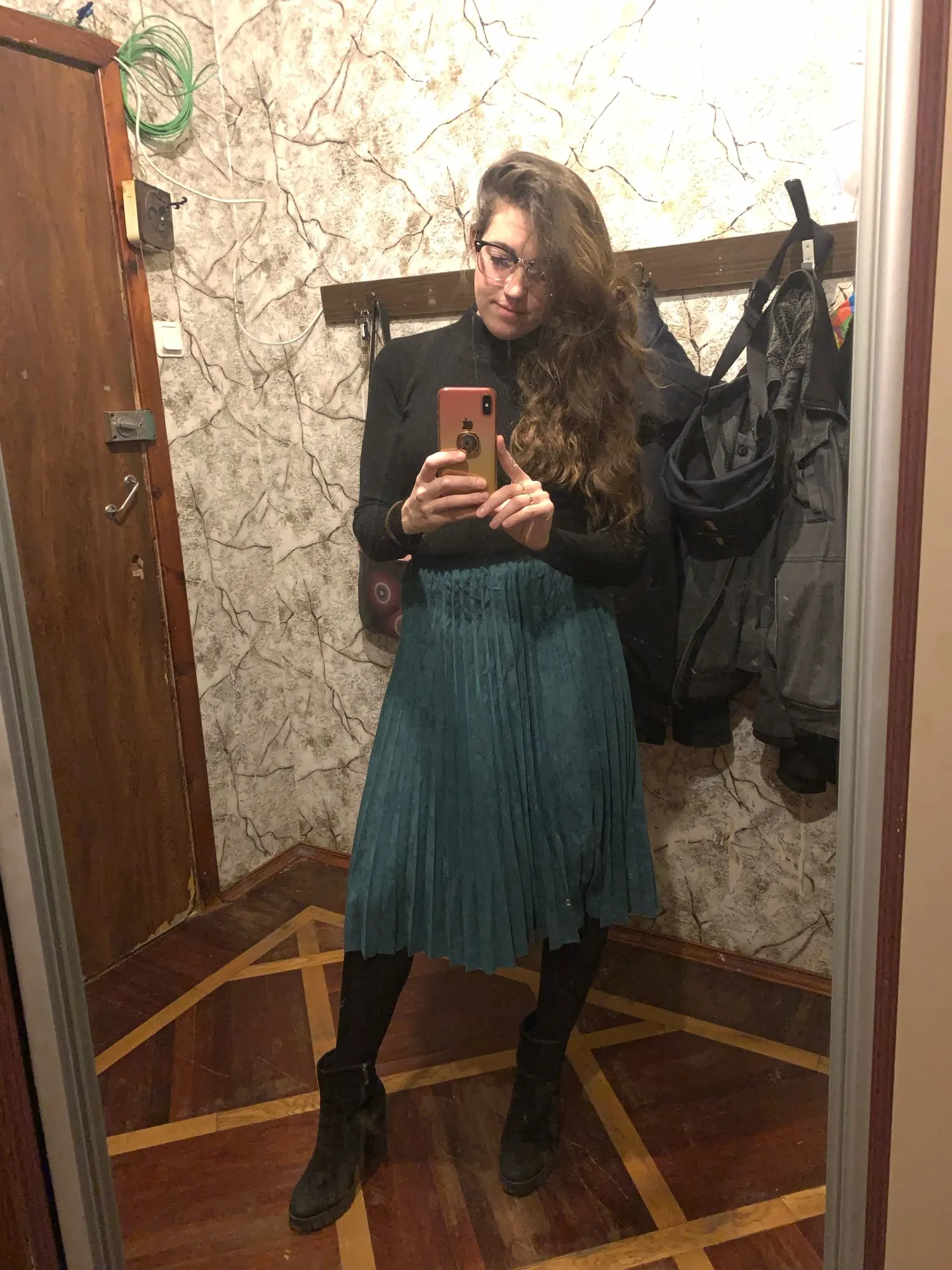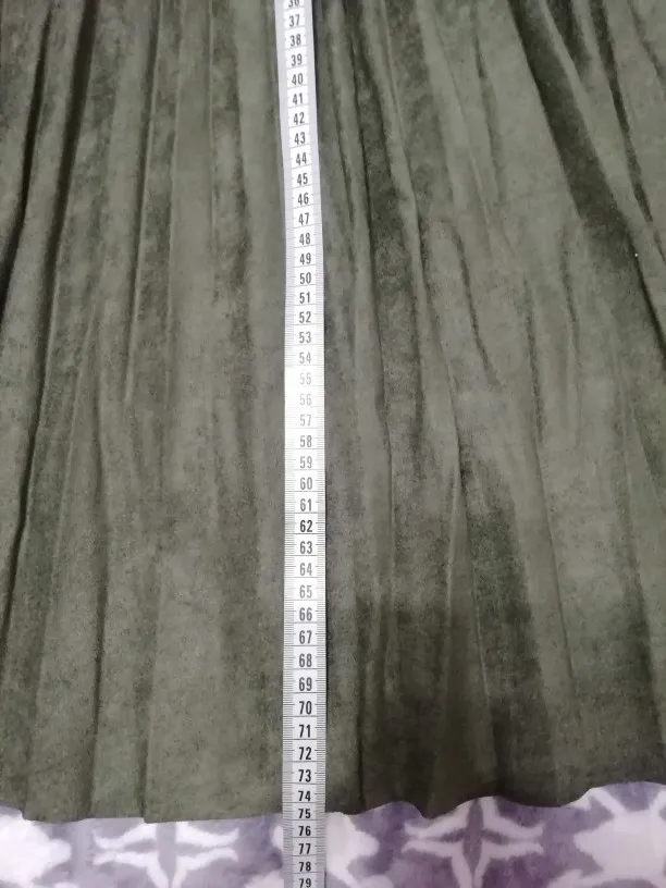 Классная юбка, как и было указано в предыдущих отзывах. Ткань под замшу, длина на 162 видна на фото, на талию 79 см села отлично, доставка быстрая, рекомендую