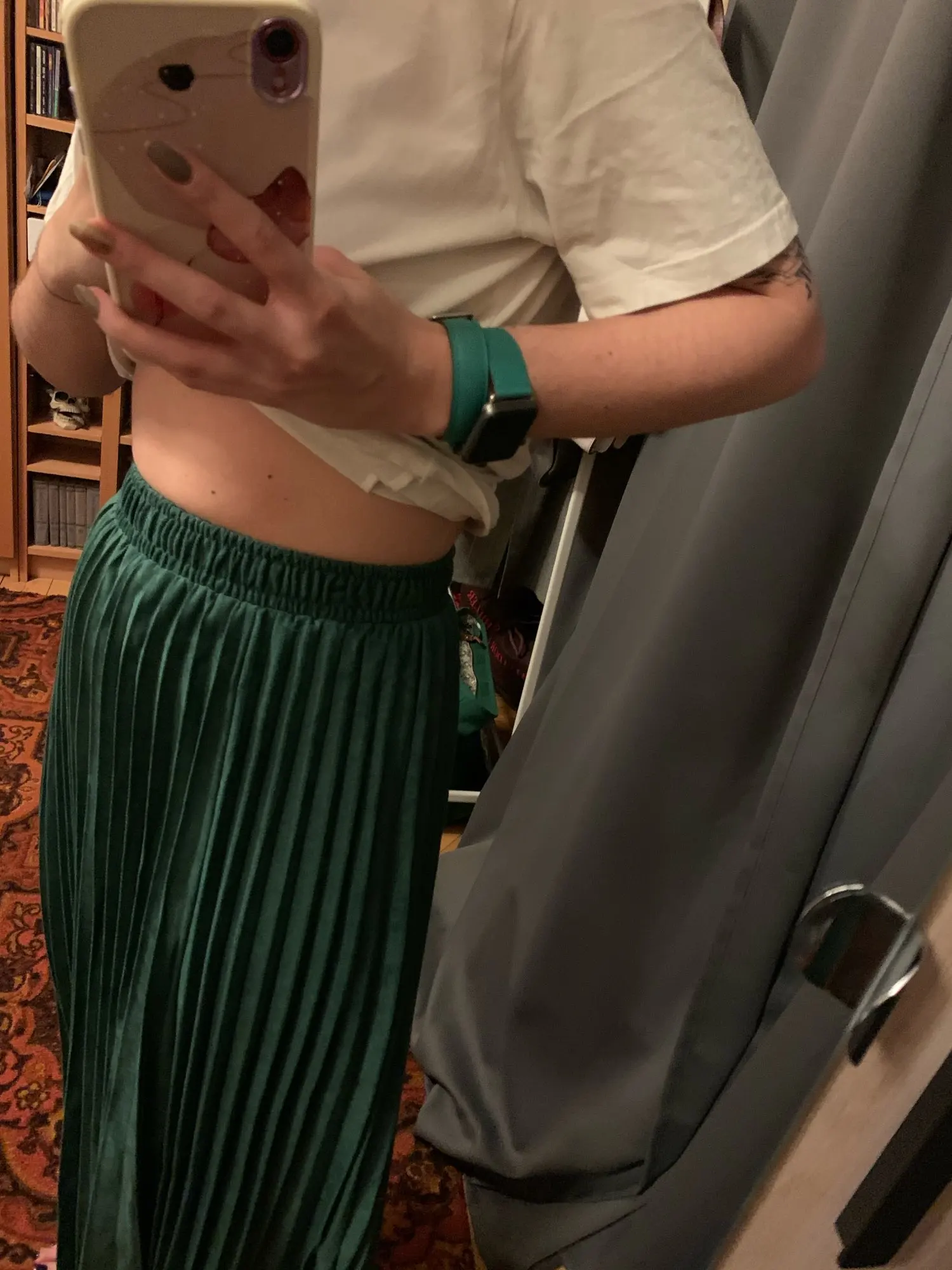 Очень красивая юбка, приятная на ощупь. На талию 74 L хорошо, думаю до 80 максимум. На рост 176 отличная длина. Мне кажется на маленьких ростом, будет длинная