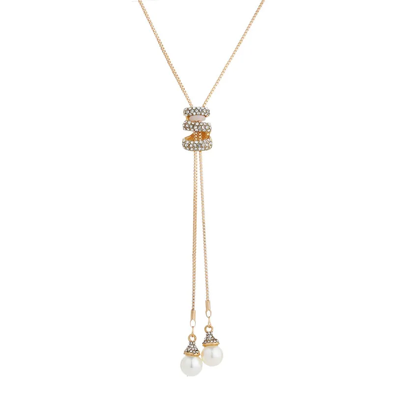 Новинка 2020, высокое качество, модная металлическая Длинная кисточка стразы, Длинная цепочка с кристаллами и жемчугом, ожерелье на свитер, ювелирное изделие