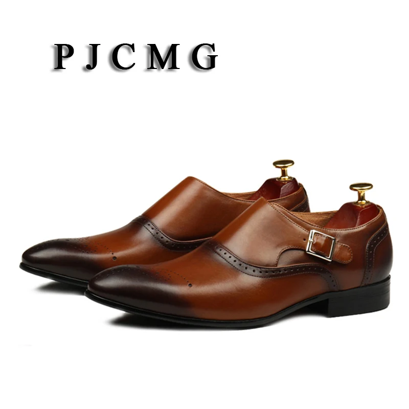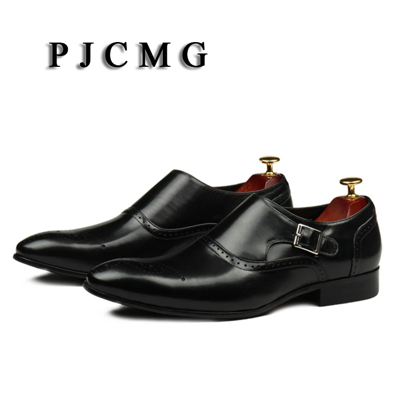 PJCMG Новые дышащие мужские деловые слипоны черныекоричневые с острым носком официальные платья из натуральной кожи Свадебные оксфорды офисная обувь