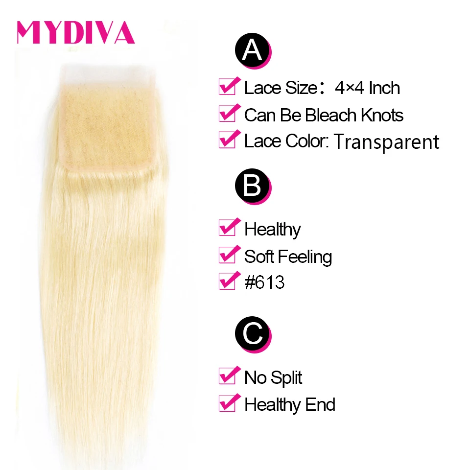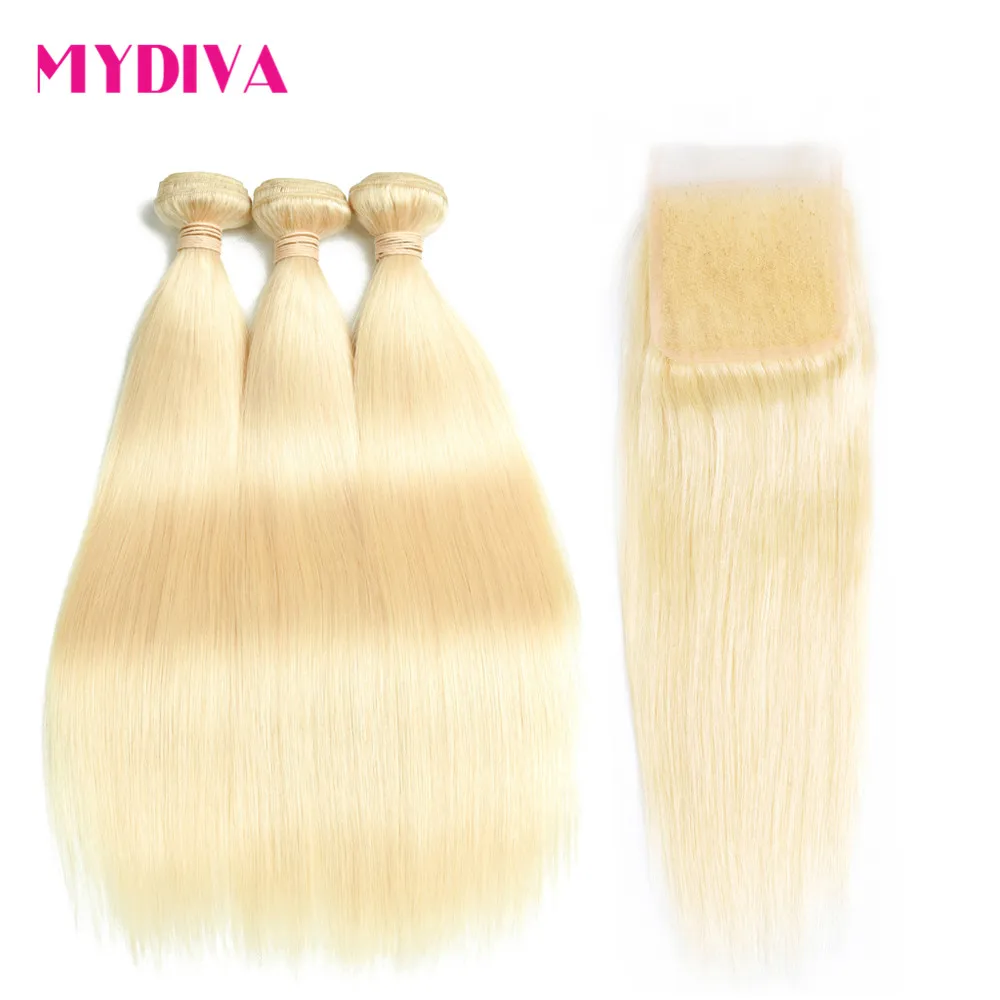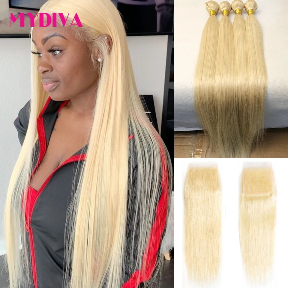 613 пряди светлых волос с закрытием, бразильские прямые пряди волос с закрытием Remy, человеческие волосы для наращивания 10-30 дюймов в комплекте