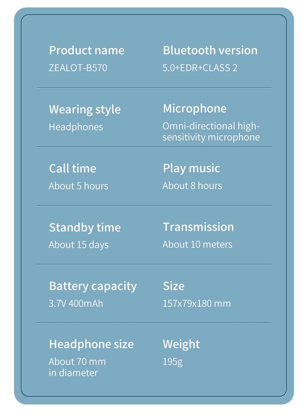 Складные Bluetooth-наушники ZEALOT B570, Hi-Fi стерео беспроводные наушники с ЖК-дисплеем, гарнитура, FM-радио, разъем Micro-SD