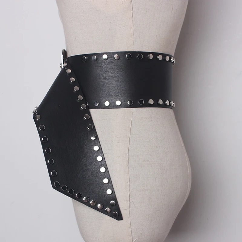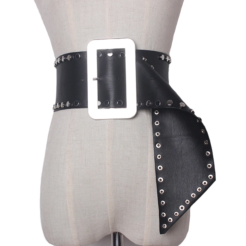 Модный Широкий кожаный женский ремень с металлическими заклепками, длинный кожаный широкий ремень для отдыха для женщин, новый ковбойский большой ремень с металлической пряжкой с язычком