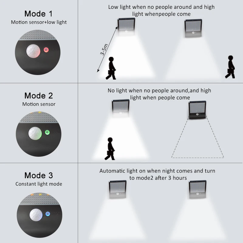 Цветное регулируемое солнечное освещение, датчик движения, три режима, 48 светодиодов, уличная лампа для сада, двора, водонепроницаемая осветительная лампа