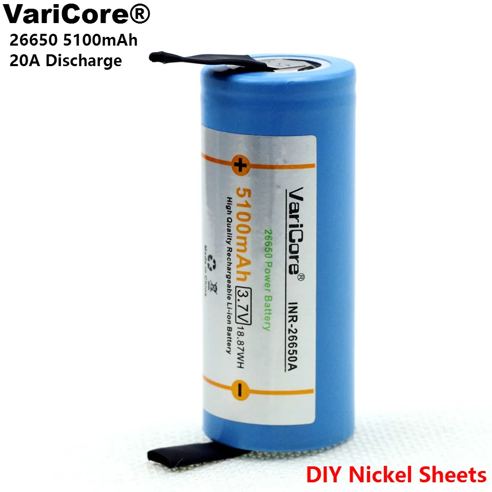 Литий-ионный аккумулятор VariCore 26650 5100 мА ч, 2 шт., 3,7 в, 20 А, разряд 3,6 В, аккумуляторы питания + никелевые листы для самостоятельной сборки
