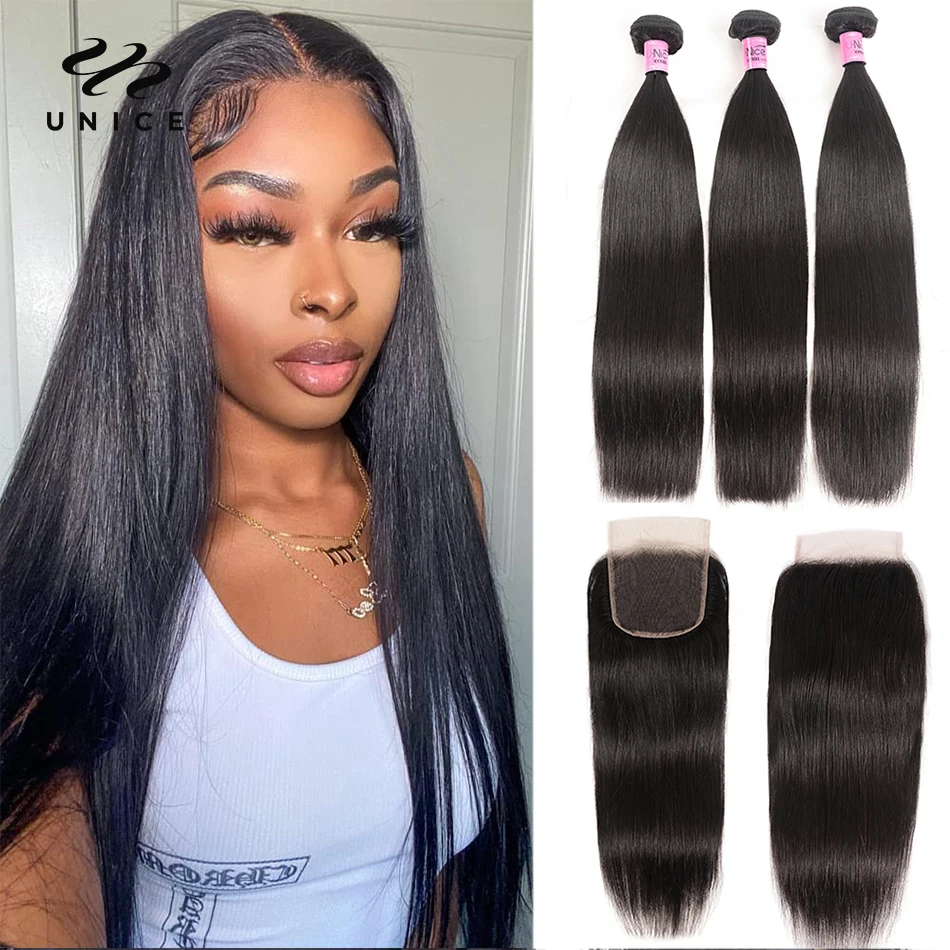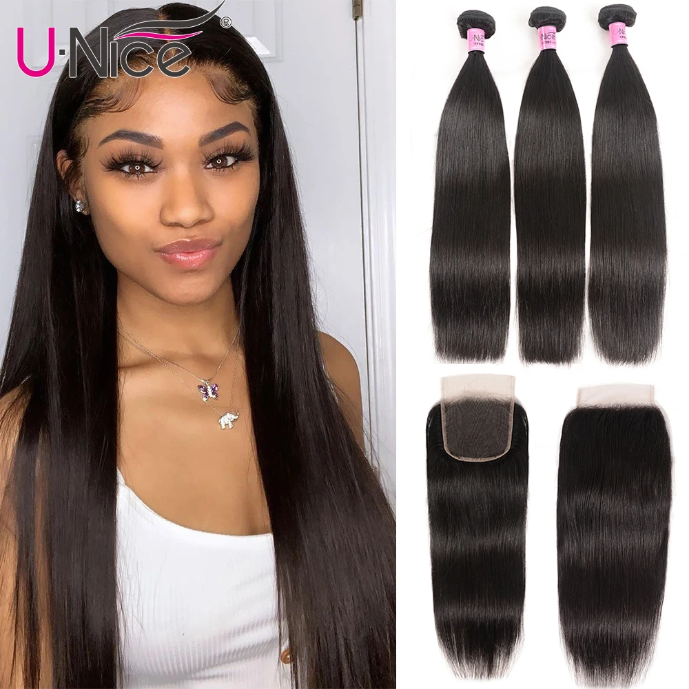 Волосы UNice Icenu серии волос Реми, бразильские прямые волосы, 3 пряди с застежкой, человеческие волосы, волнистые, 4 шт., 8-30 дюймов