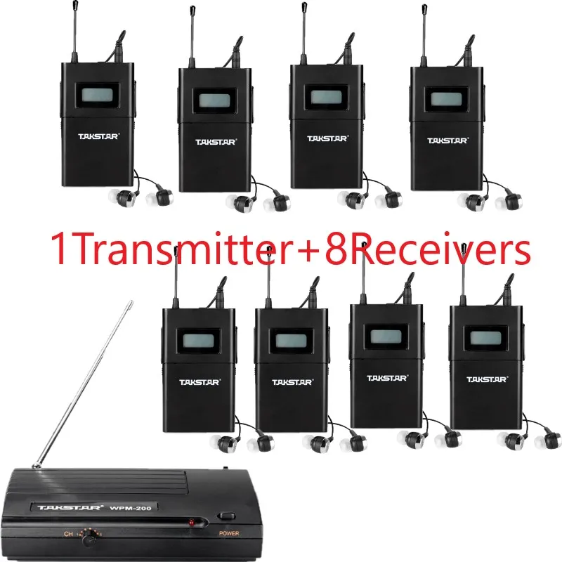 Беспроводная система мониторинга Takstar wpm-200wpm200 UHF, стерео Беспроводная гарнитура, сценические мониторы, 1 передатчик + 8 приемников