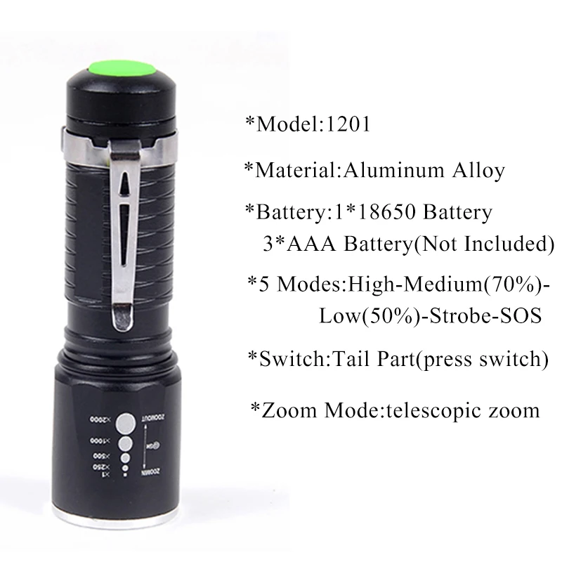 Фонарик XM-L T6, 8000 Люмен, 5 режимов, водонепроницаемый, мощный, масштабируемый, тактический, из алюминия, с аккумулятором 18650 или AAA