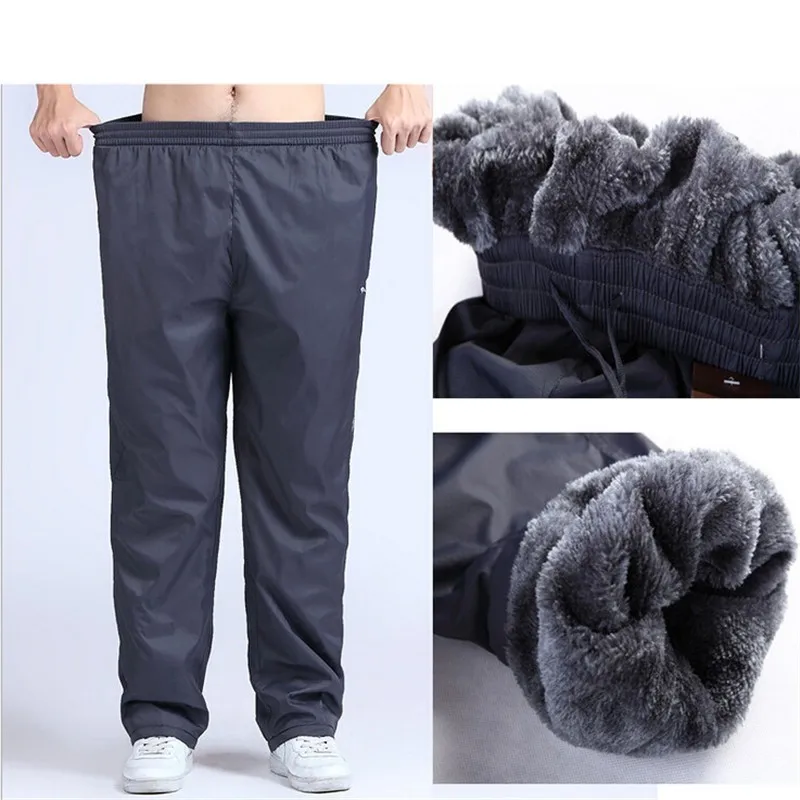 Мужские Водонепроницаемые Штаны 4XL 5XL 6XL, зимние спортивные штаны на молнии с карманами, мешковатые флисовые супер теплые штаны, спортивная одежда для мужчин