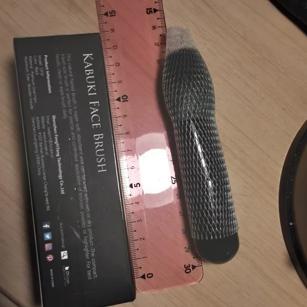 Быстрая доставка, упаковано хорошо в пупырку и коробочку. На кисточке защитная сеточка. Корпус крепкий, выглядит внешне очень прилично. Ворс мягкий, плотно набит, упругий. Тушует отлично без пятен. После мытья волос не лезет
