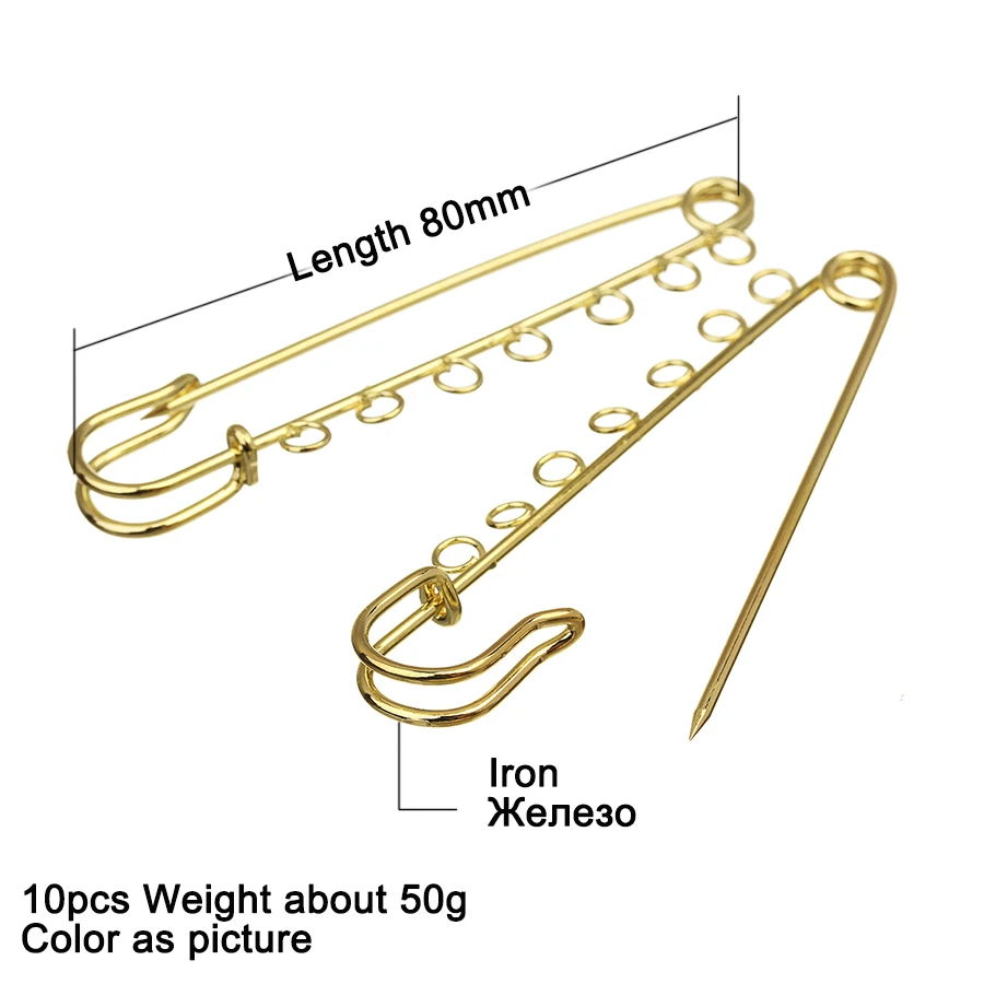 Металлическая брошь SAUVOO золотого цвета с 7 отверстиями, 10 шт., булавки длиной 80 мм для изготовления ювелирных изделий ручной работы своими руками, фурнитура