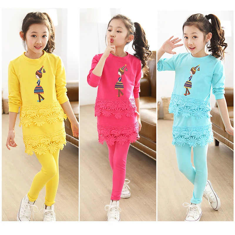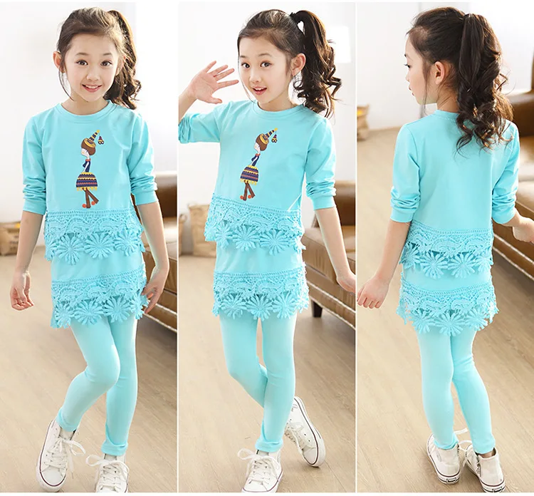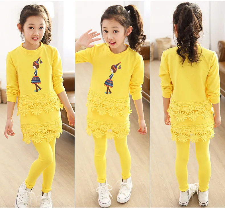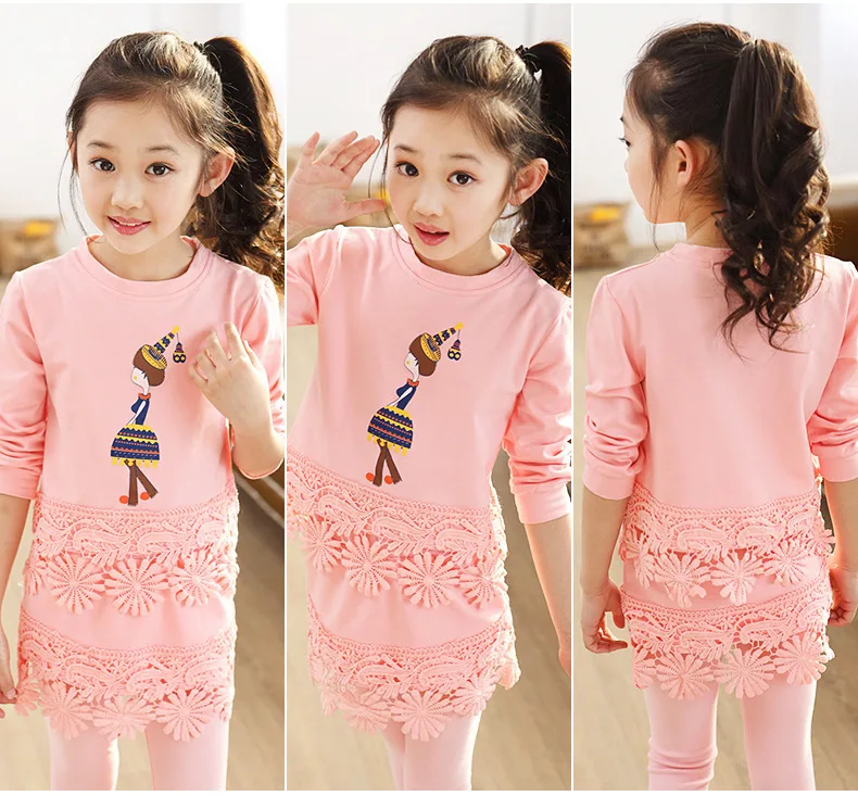 Комплект одежды для девочек 2-9 лет, новинка 2022, Весенняя рубашка с длинным рукавом и штаны для маленьких девочек с мультяшным рисунком, Детский костюм из 2 предметов