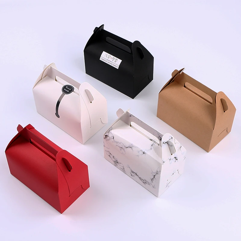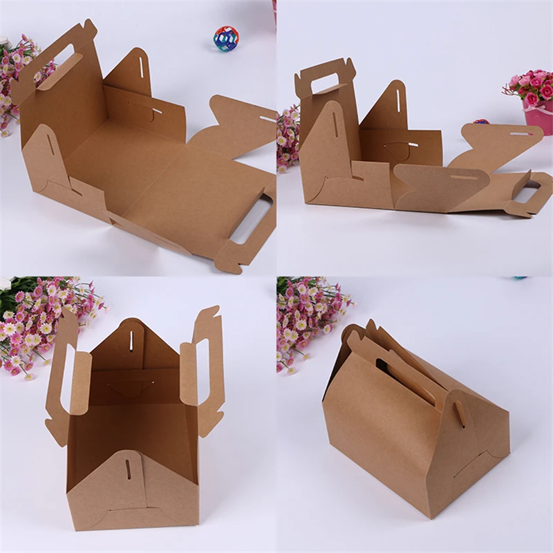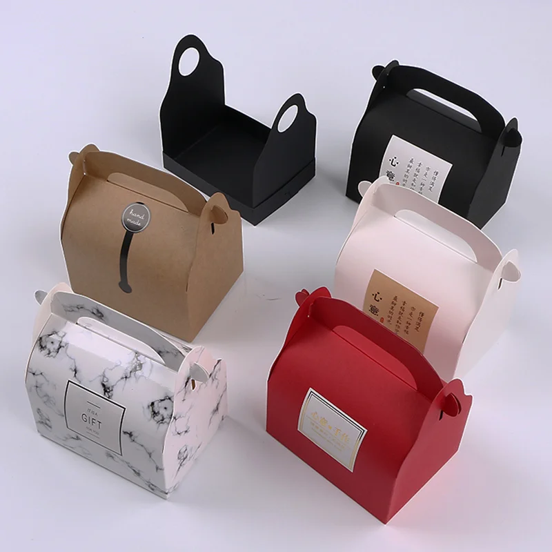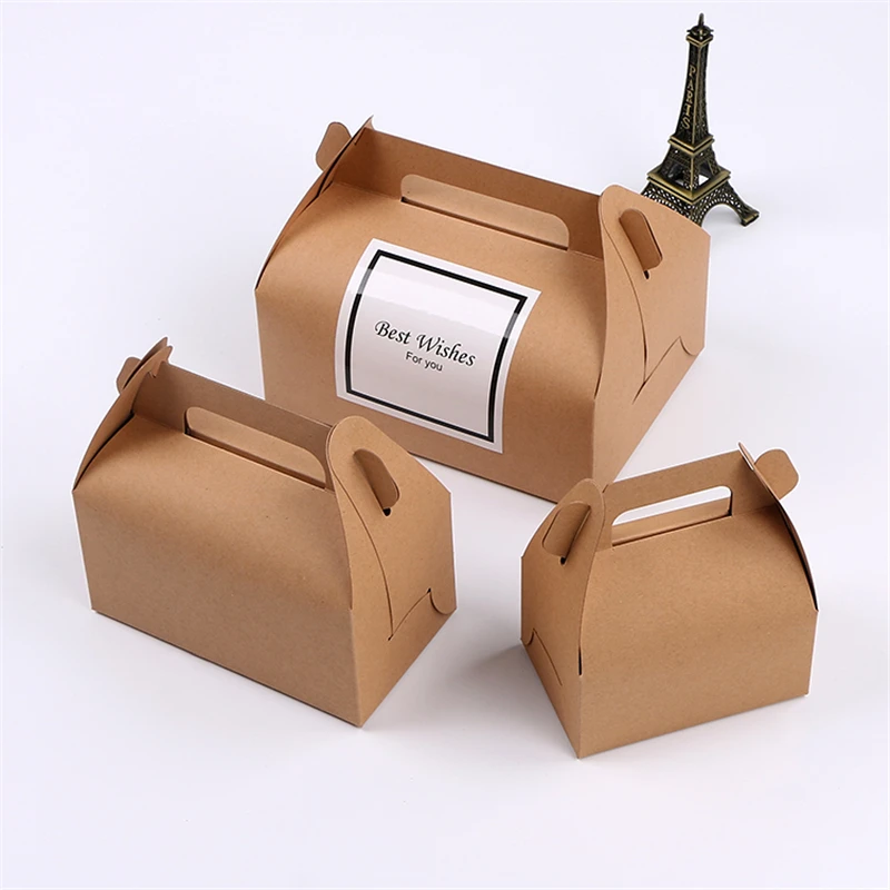 Коробка из крафт-бумаги LBSISI Life, 10 шт., для пирожных, коробки с ручками, для рождества, дня рождения, свадьбы, подарочная упаковка для конфет, с наклейками