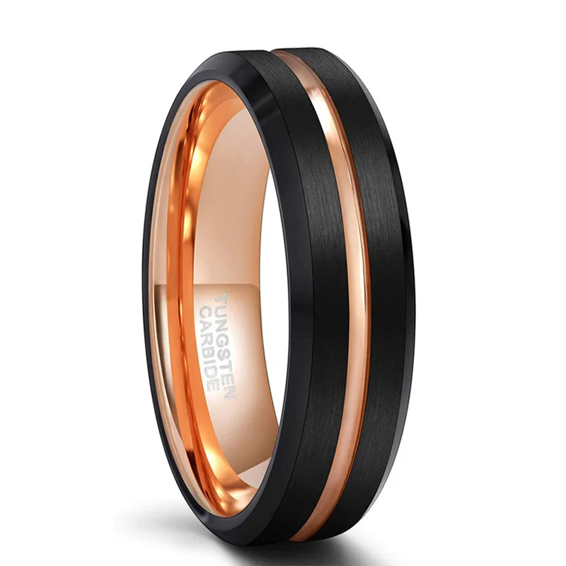 Номер моделиMen Ring 8mm Black Tungsten Ring Luxury Jewelry With Rose Gold Line We