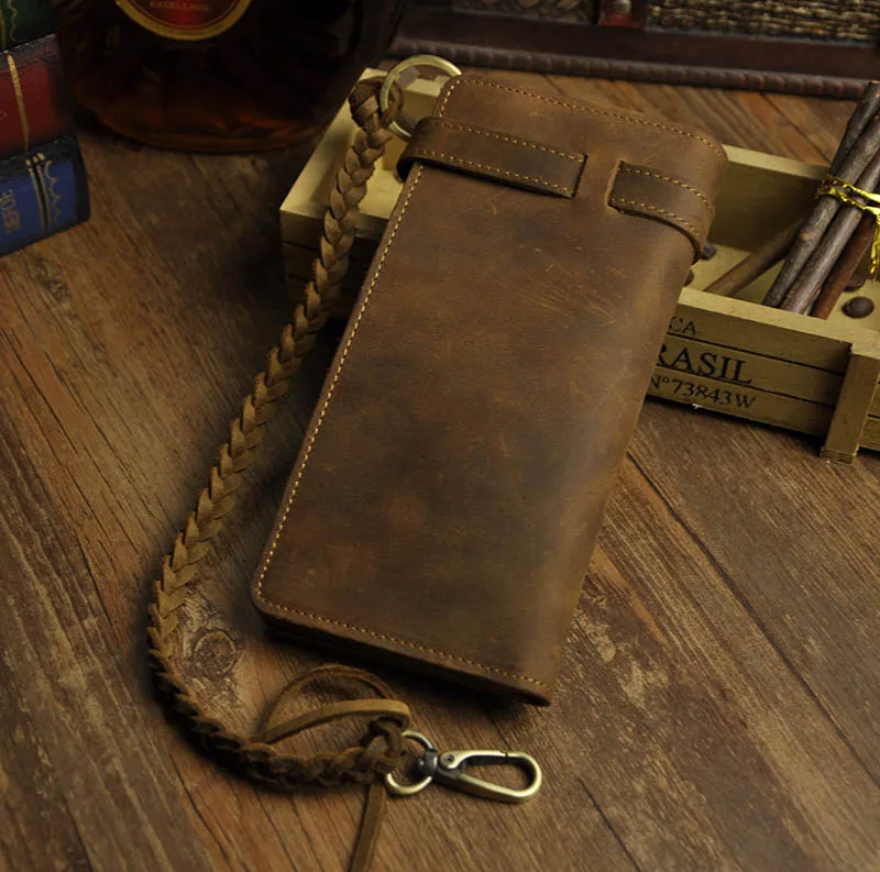 Кошелек-клатч мужской, из натуральной кожи, на цепочке