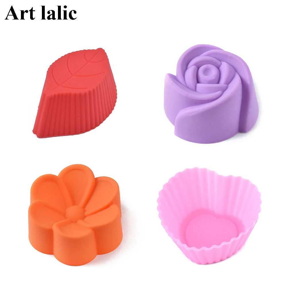 12 шт. (1 дюжина) силиконовые формы для выпечки торта форма круглая Роза звезда сердце для желе силиконовая форма для кексов Форма для маффинов чашка для выпечки