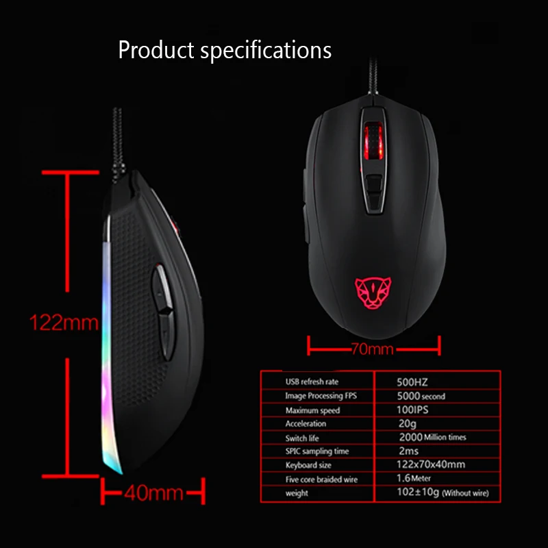 7) Заводской режим DPI: 500800 (по умолчанию), 1000,1500,2000,3000,4000, 5000