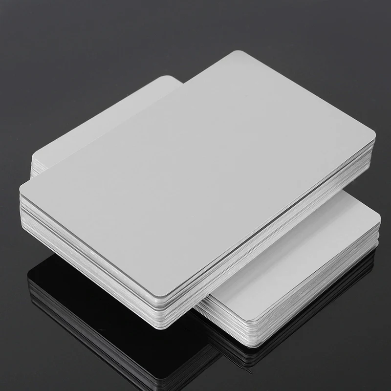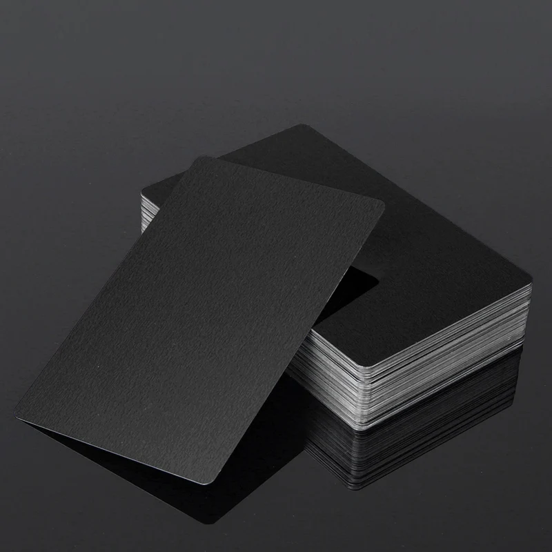 Черные Серебристые алюминиевые карта из сплава визитные карточки заготовки 100 шт. 0,22 мм толщина 3,4x2,1 дюйма