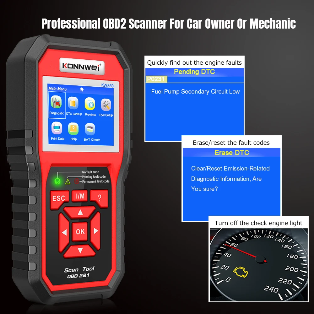 OBD 2 Автомобильный сканер OBD2 сканер KONNWEI KW850 полный ODB2 сканер многоязычные автомобильные инструменты ODB автомобильный диагностический инструмент для автомобилей Odb2