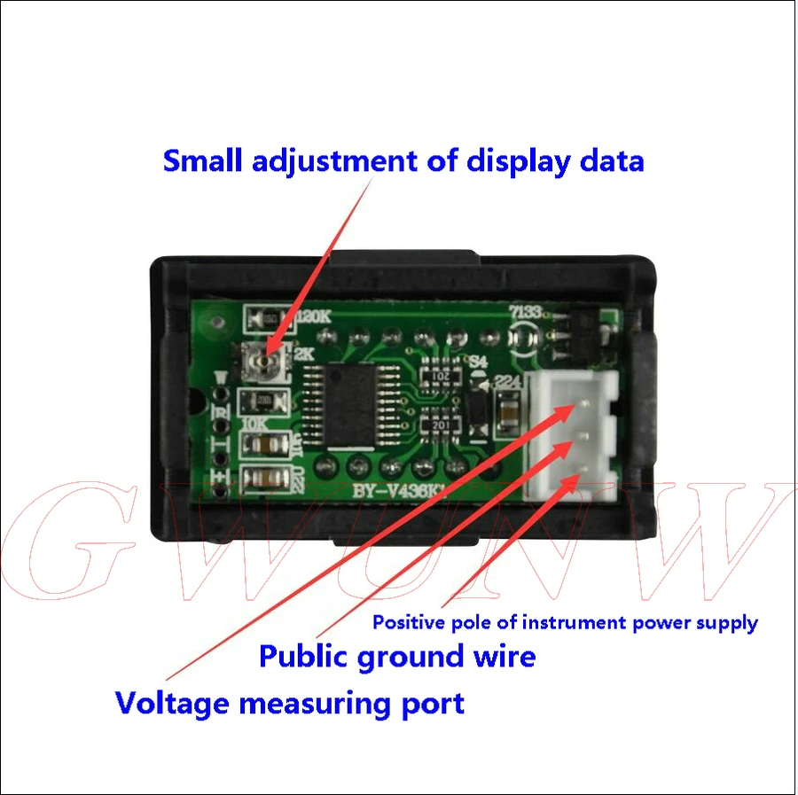 Цифровой вольтметр GWUNW BY436VK1, постоянный ток 10 В, 30 В, 33 в, 50 в, 100 в, 200 в, 500 В, 4 бит, 0,36 дюйма, панельный измеритель напряжения, тестер