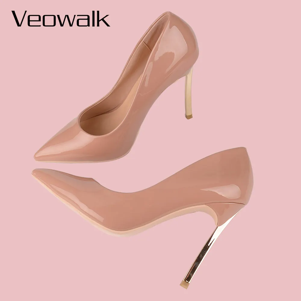 Veowalk женские туфли на высоком каблуке женские туфли-лодочки на шпильке 10 см пикантные женские туфли на высоком каблуке из лакированной кожи с острым носком свадебные туфли