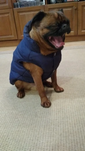 Классная жилетка, наконец-то нашли то, что налезет на нашу не самую стройную мопсяшку) Видно, конечно, что расчитана на более большую, впринципе, собаку, т.е. и в длину, нтжилетка очень хорошо поворачивается на спине и получается очень милая опушка, как на шубке у Санта Клауса, теперь гуляем и поднимаем настроение гуляющим))