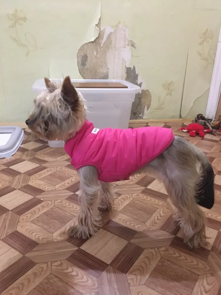 Качество супер. Мягкая. Тёплая. Воротник просторный, на французского бульдога будет очень удобно. На Йорка ворот широкий надо вниз одевать что-то... На Йорка 3 кг М на 'голое тело' велика. На прогулку одели на флисовый комбинезон и оказалось очень удобно. Собака прогуляла 1 час в минус 12' даже не замёрзла.