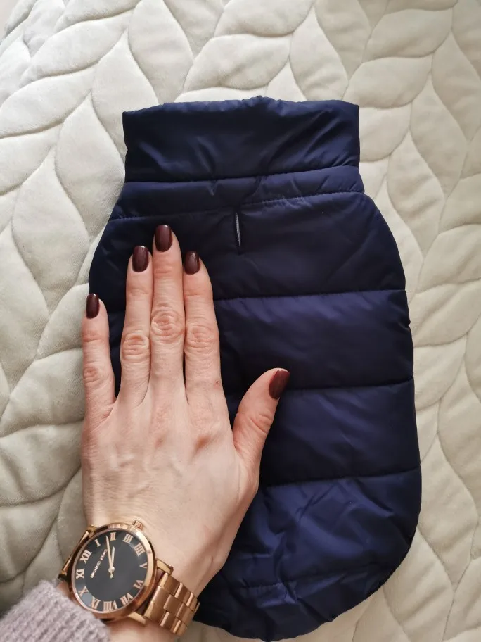 Жилетка супер, очень мягкая подкладки, типа меховушки, под ней ощущается тонкий слой синтепона, верх нежная плащёвочка, качество пошива отличное. Брала размер XXL для мопса 11 кг. Жилет сел свободно, так и хотела, собака не любит в обтяг. Примерные наши размеры: О.Шеи -42 см.,О.Груди -52 см.,длина спинки 36 см. Жилет можно завернуть, что бы хвостик был виден или полностью закрыть спинку с хвостом. До Москвы доставили за 8 дней. Супер! Доставка еще объединила заказы из других магазинов в одну посылку что очень удобно. Продавцу огромное спасибо за классный товар. Очень рекомендую тот магазин!!