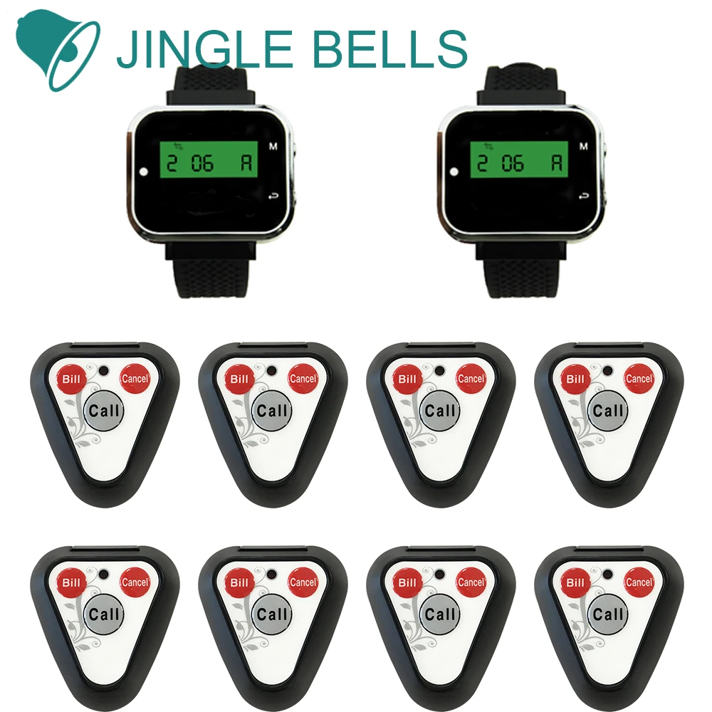 Jinglebells отель, кафе 8 кнопки вызова + 2 часы пейджерамаккумуляторная часы приемники вызов официанта систем Ресторан оборудования