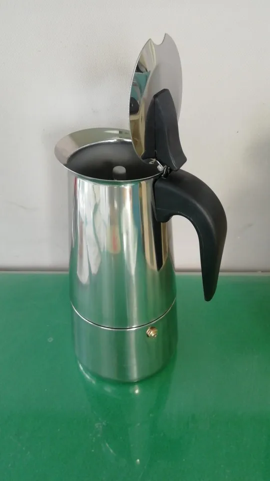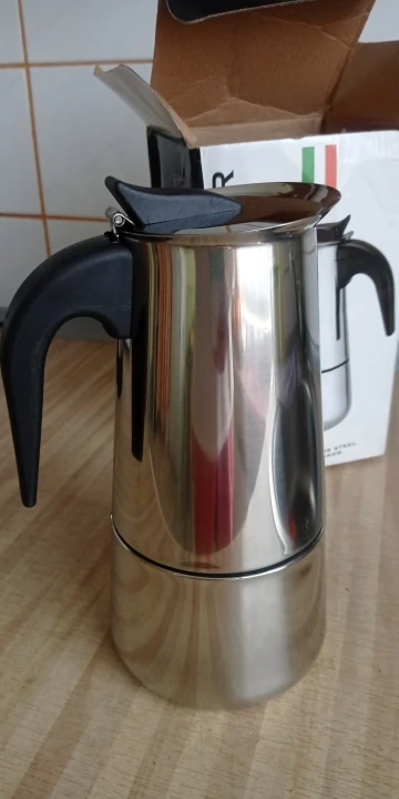 Хороший кофеварка, но плохо работает с индукцией, в металле слишком мало железа. Магнит не держится на нем. Если вы используете его с индукционной пластиной, пластина сгибается.