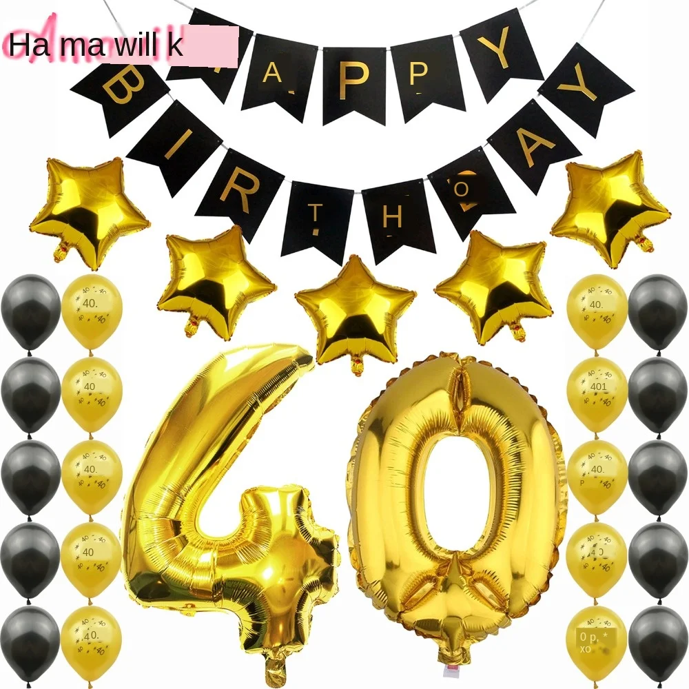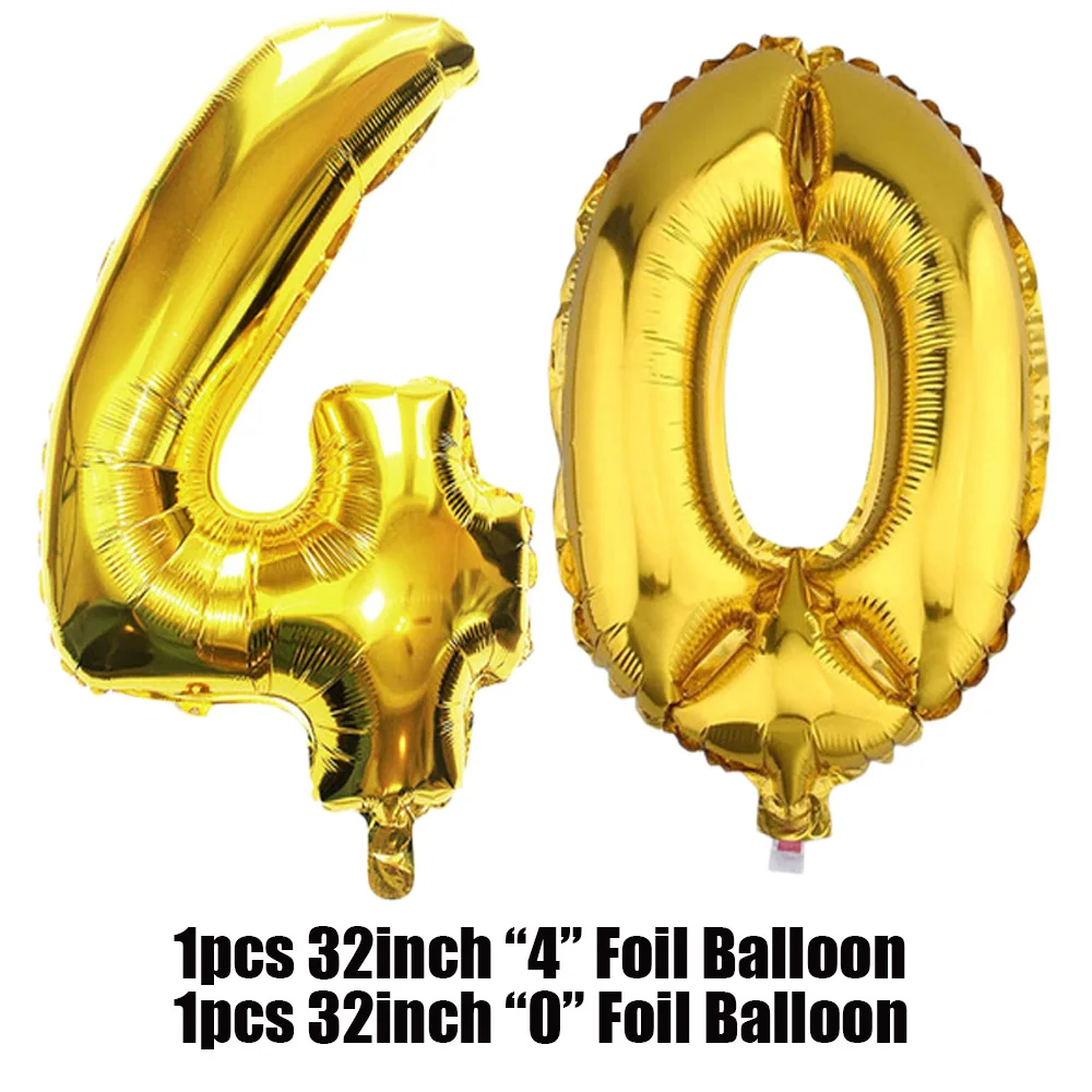 Набор для украшения на 40-й день рождения Amawill, баннер, воздушные шары, 32 дюйма, фольга, цифры, 40 лет, юбилейные принадлежности