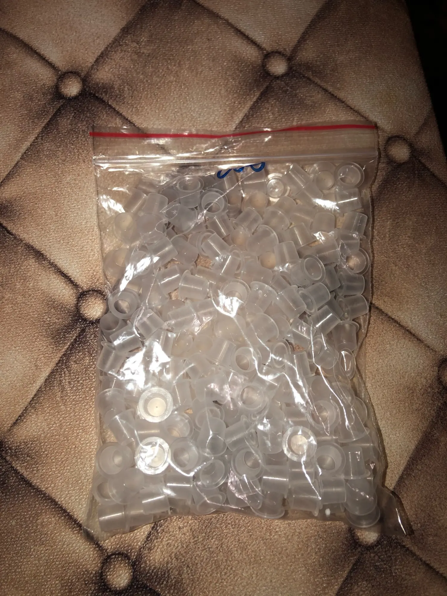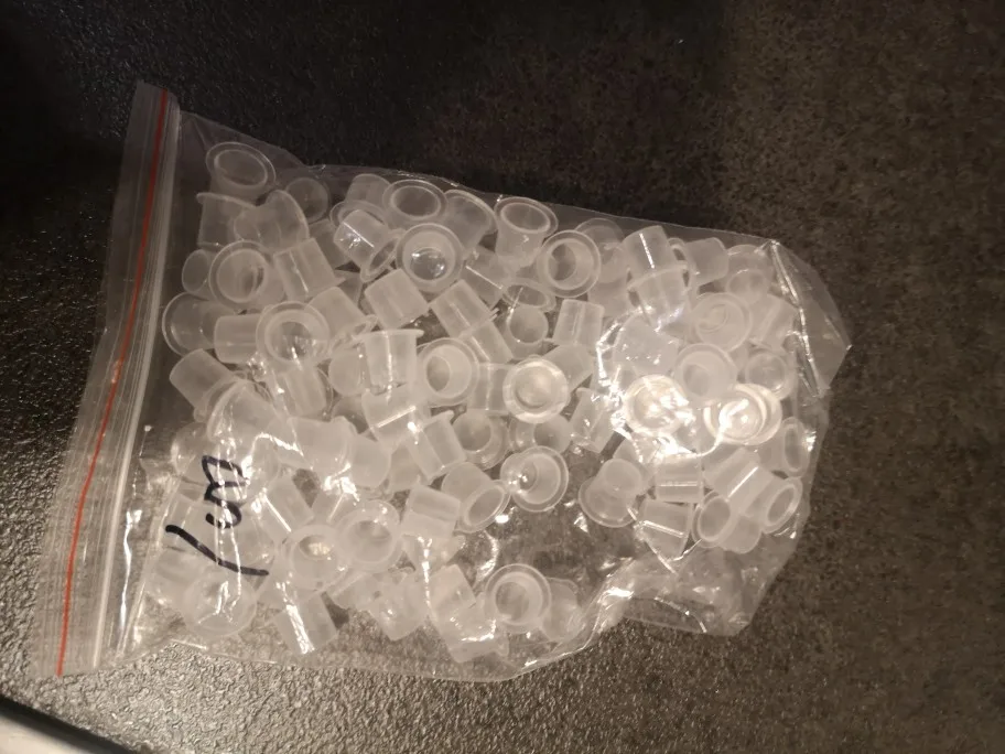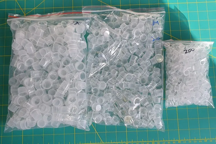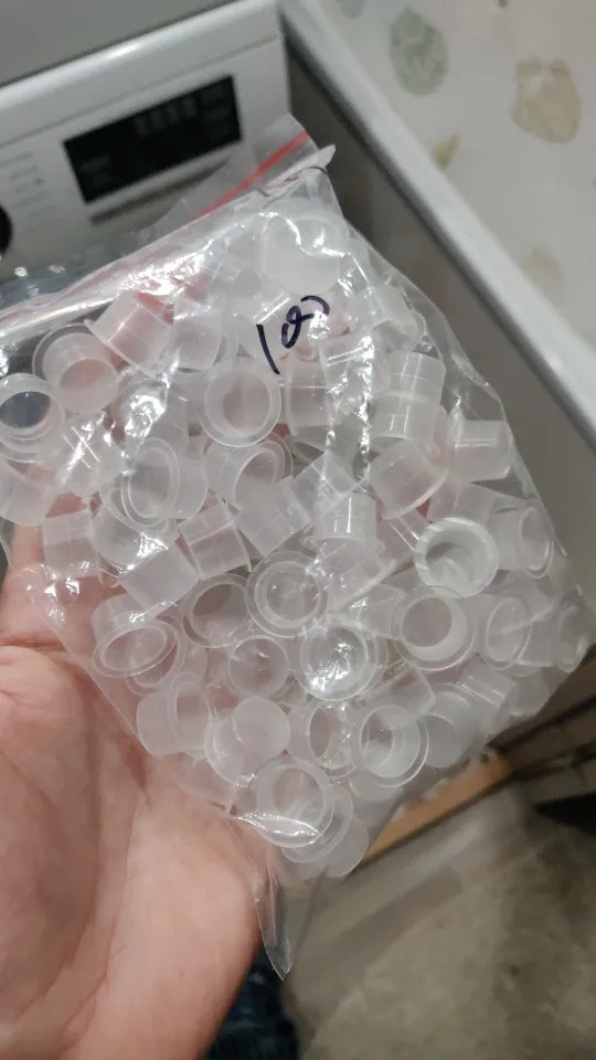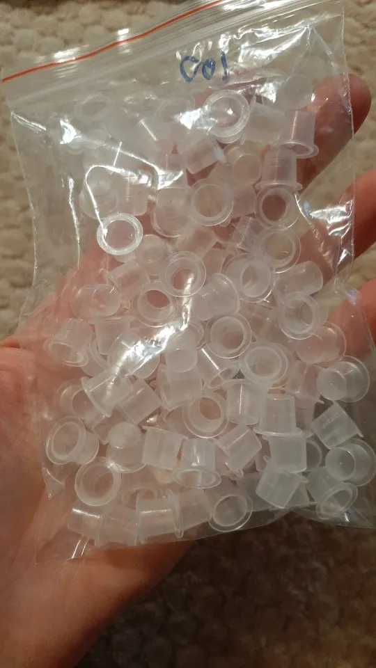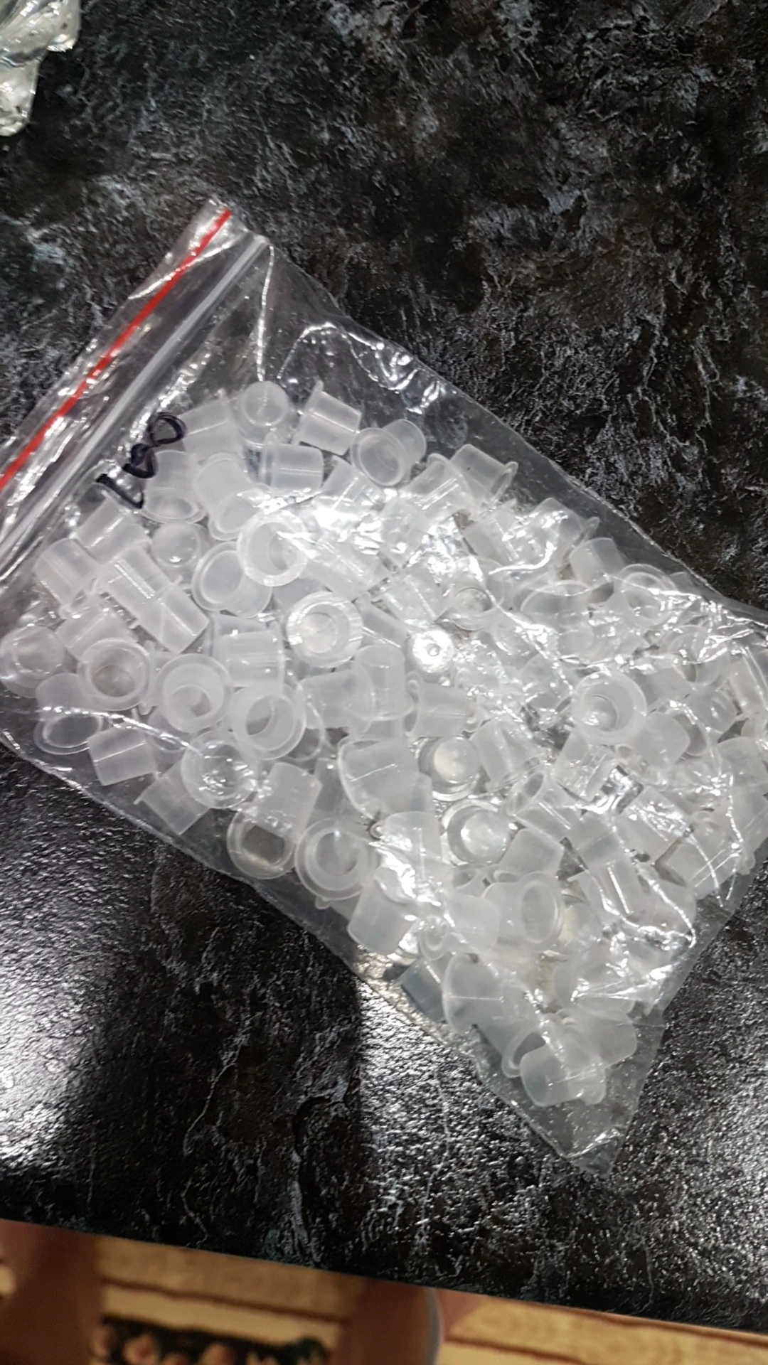 Колпачки до СПб пришли быстро. кол-во не считала, но их много. Силиконовые конечно удобнее в использовании, но эти тоже подойдут. входит 10 капель пигмента, чего вполне хватит на процедуру. Спасибо)