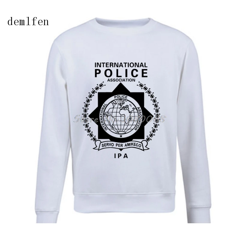 Толстовка мужская с капюшоном, модная повседневная утепленная флисовая кофта с логотипом Интерпола, с надписью International Police, весна-осень