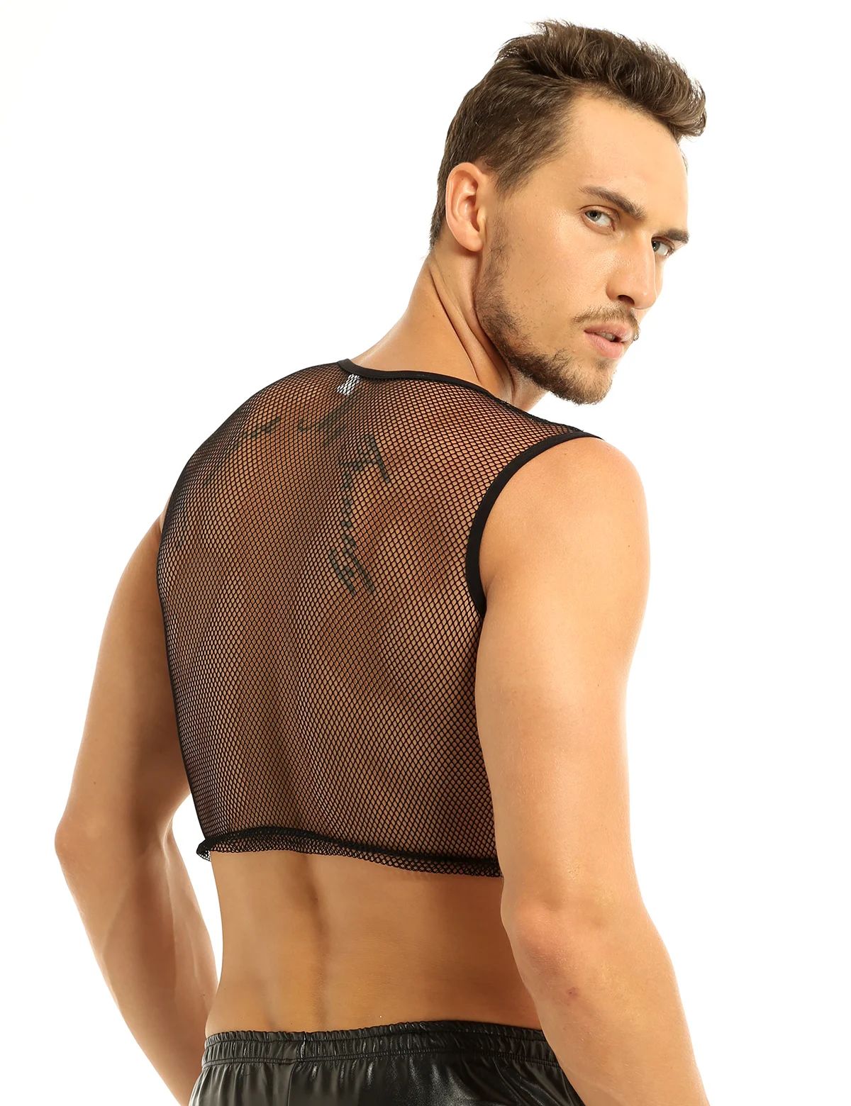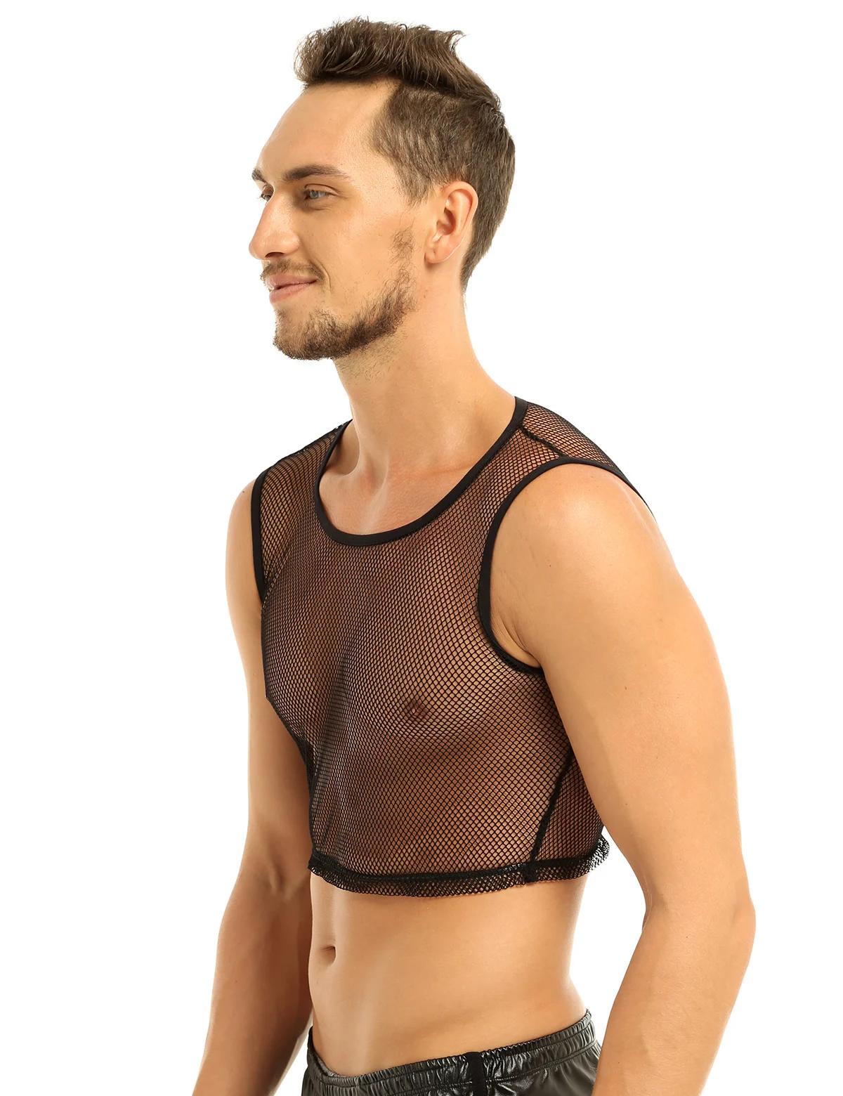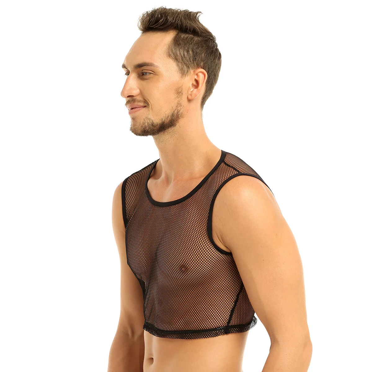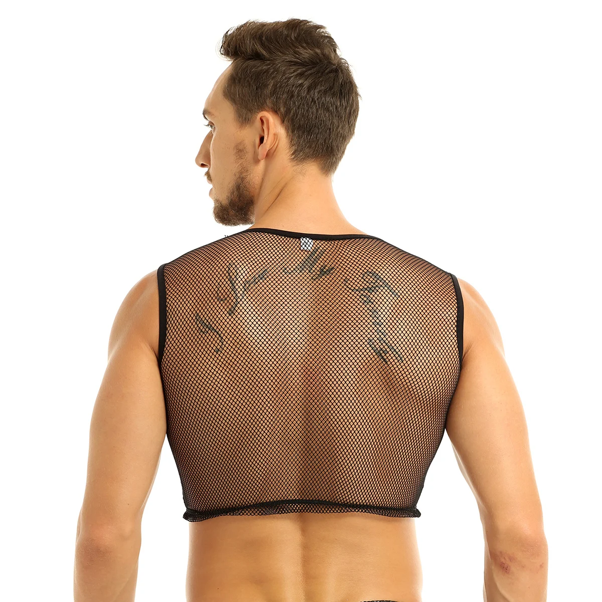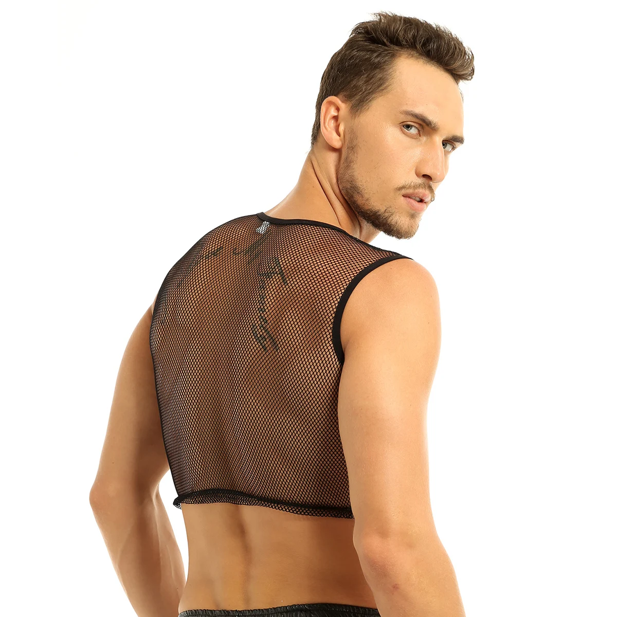 Iiniim, сексуальный, модный, мужской, без рукавов, прозрачный, сетчатый топ, майка для бодибилдинга, жилет для ночного клуба, костюмы для вечеринок