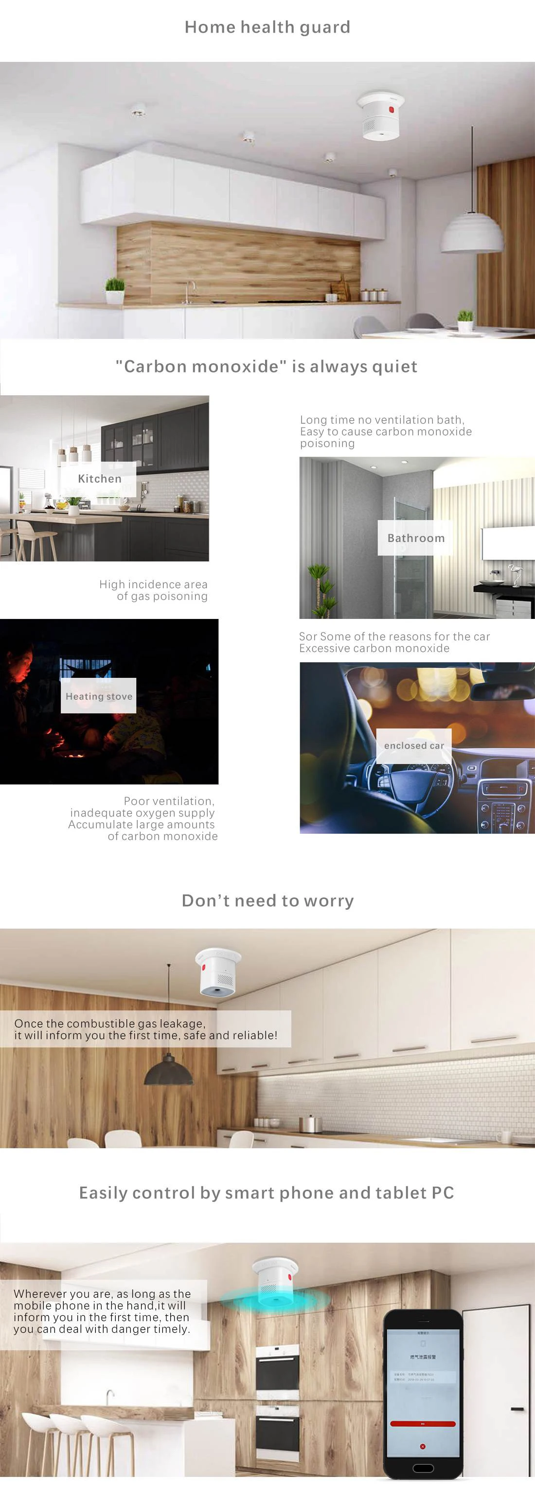 Беспроводной детектор оксида углерода Zigbee для кухни Heiman, газовый датчик, совместимый со шлюзом SmartThings Ziptao