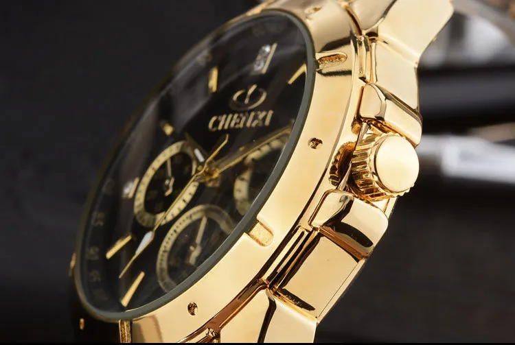 Часы наручные CHENXI Мужские кварцевые, роскошные золотистые, из не...