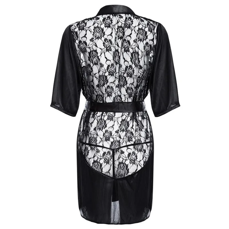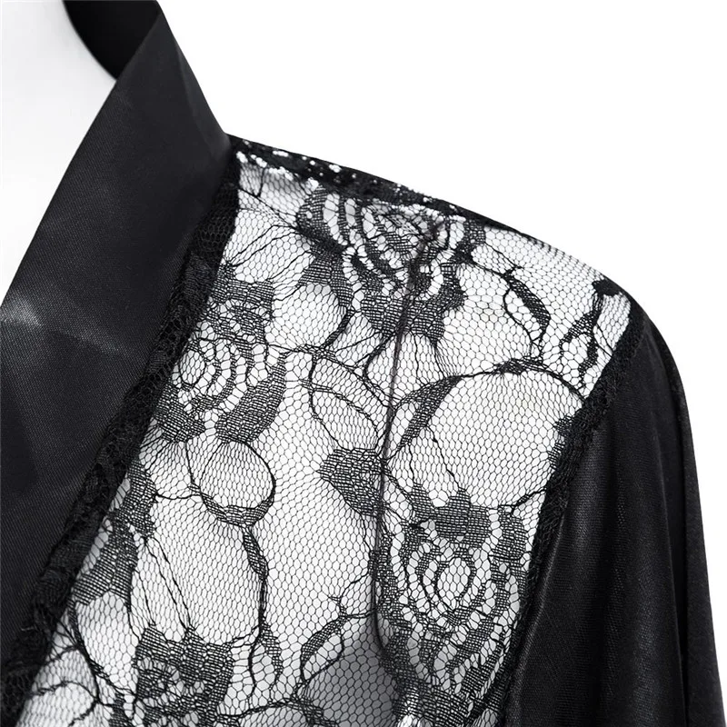 Женское атласное нижнее белье LSTRY, черное кимоно с кружевом, сексуальная ночная рубашка, эротическое нижнее белье, размера плюс