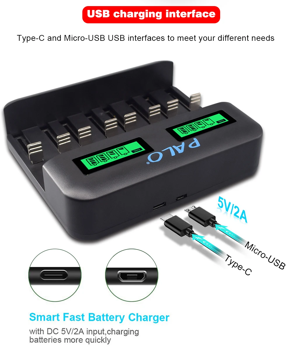 Зарядное устройство PALO USB с ЖК-дисплеем, 8 ячеек, 1,2 в