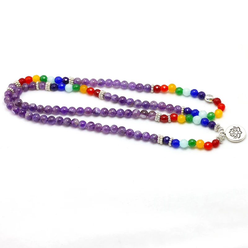 Женский браслет Mala 7 6 мм с бусинами, высококачественный браслет с натуральным фиолетовым кристаллом для йоги или ожерелья, модные ювелирные украшения в виде лотоса
