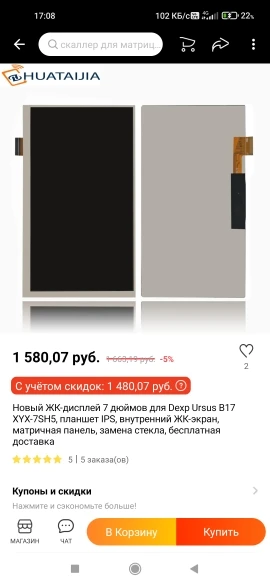 Отличный продавец рекомендую! Дисп пришёл неисправный вернули деньги