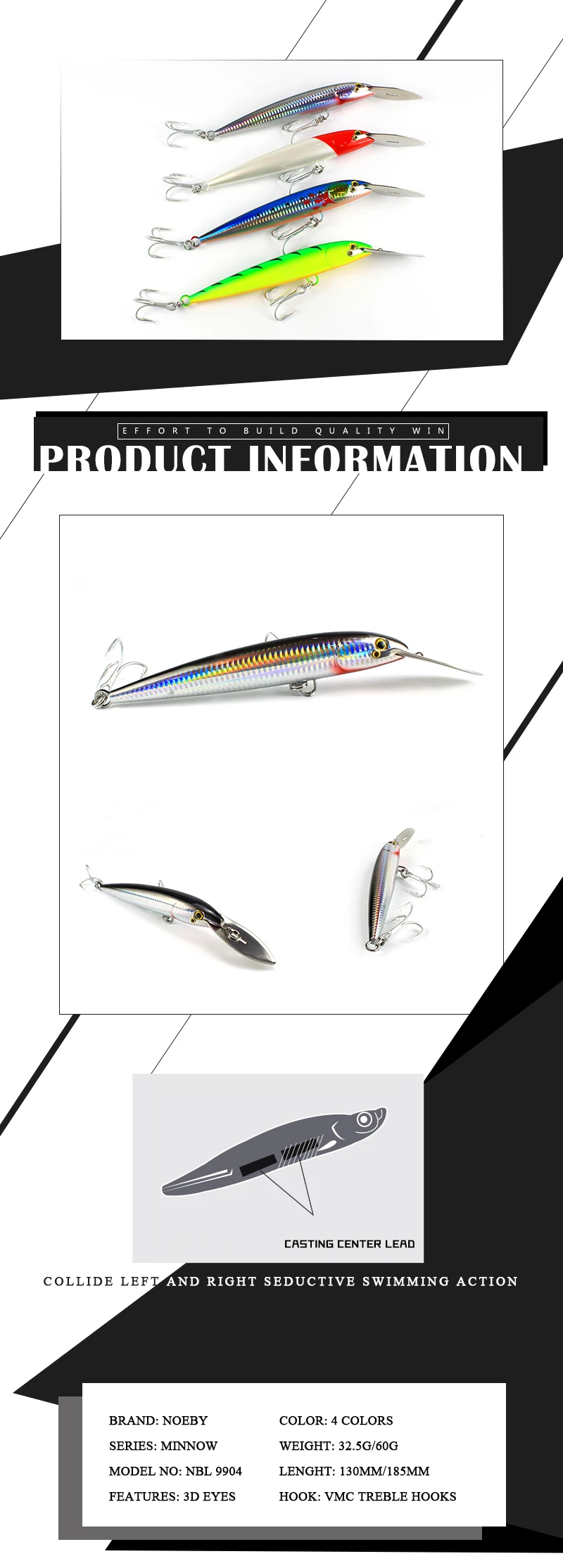 3. Крепкий и твердый корпус, стальные шарики для сдвига веса в корпусе, система длительного литья с неотразимой погремушкой и классическим плавательным действием.